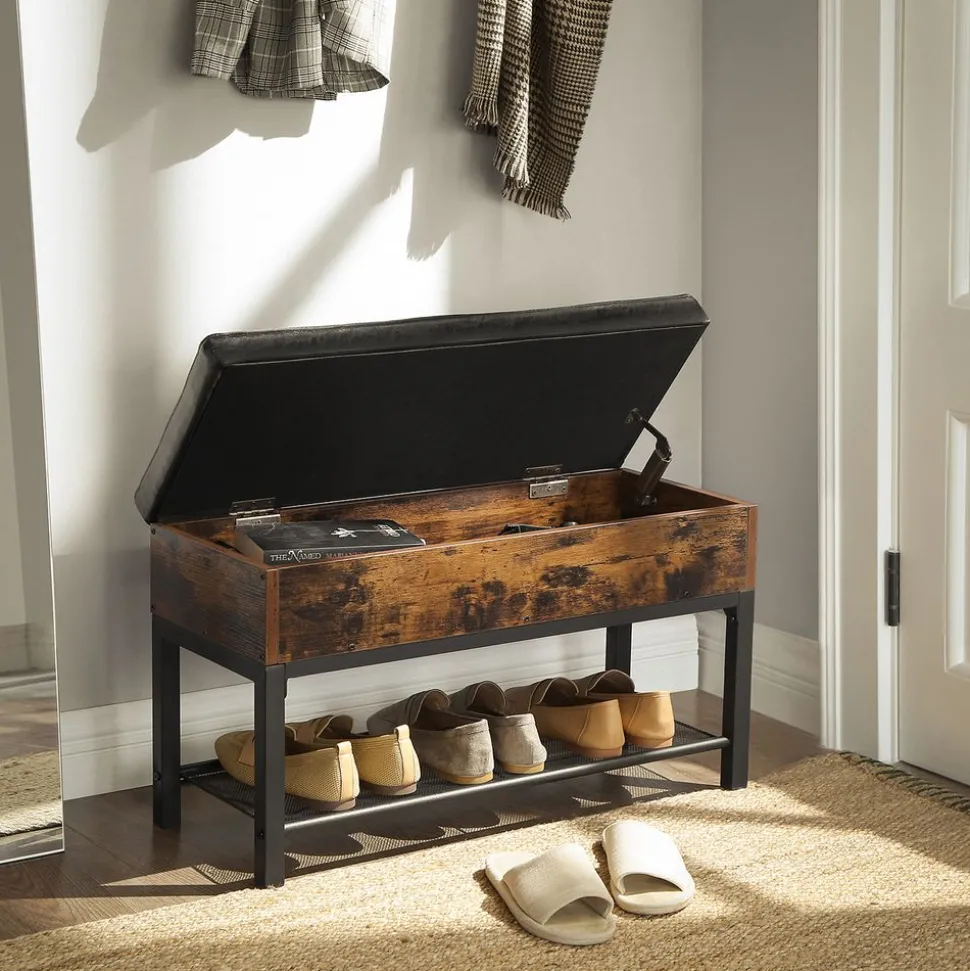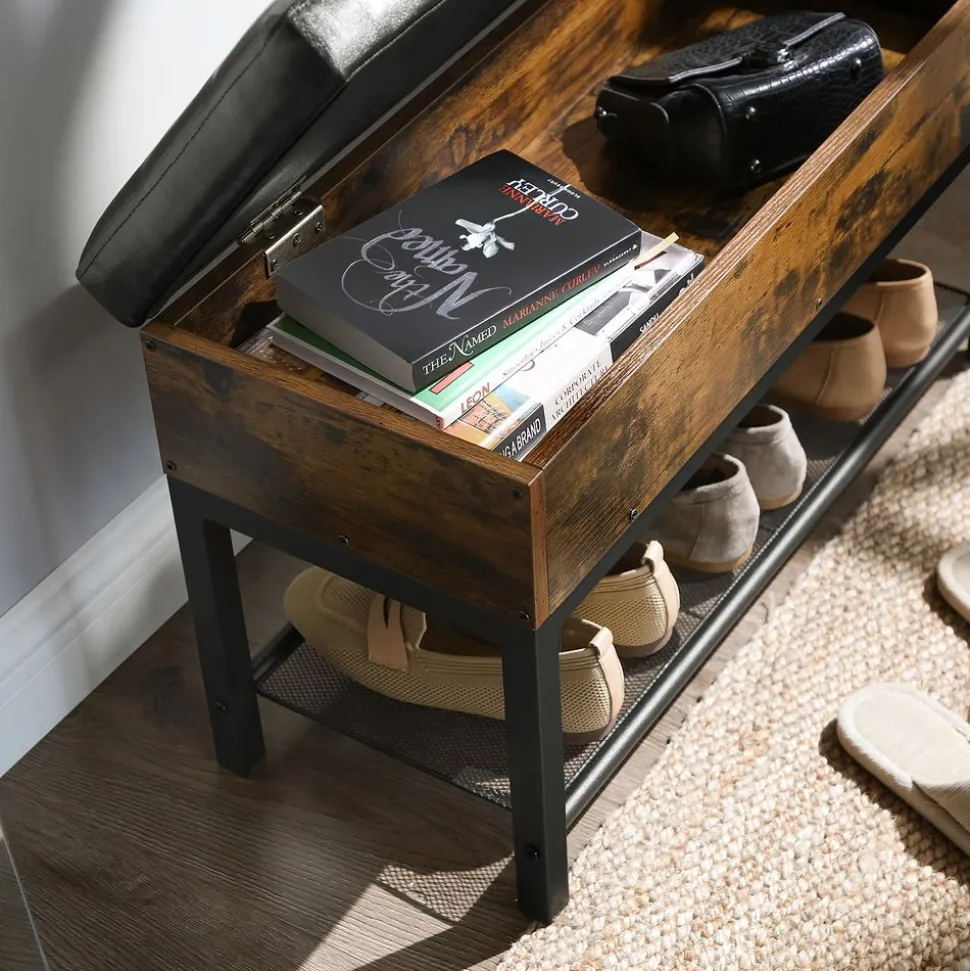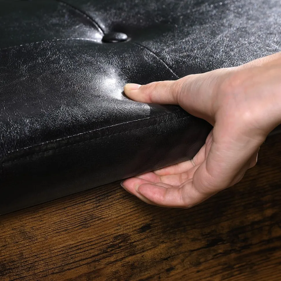 DE QUOI EST FAIT CE BANC ? D’un banc confortable avec un revêtement en PU agréable au toucher, d’un coffre de rangement élégant et d’un cadre en acier noir. Ce siège est également un objet de décoration de style industriel