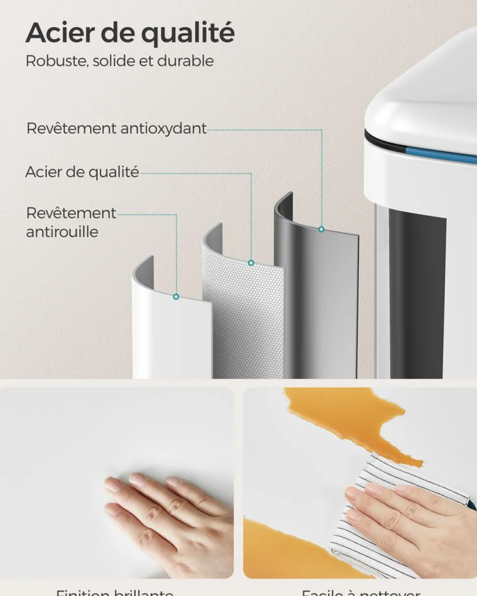 Matières écologiques – Cadre en panneau de fibres de la classe E1, solide et résistant; vitre en polystyrène, transparent et facile à nettoyer (Le vitre est protégé par un film de protection anti-rayures, veuillez enlever le film avant l’usage.)
