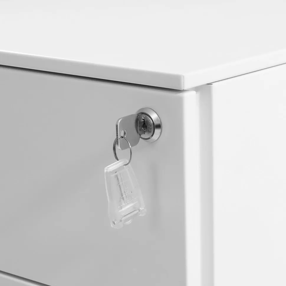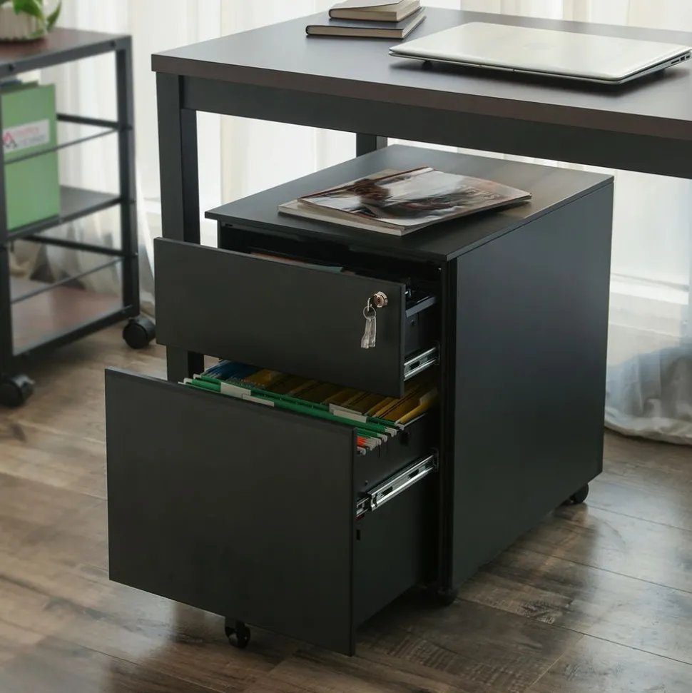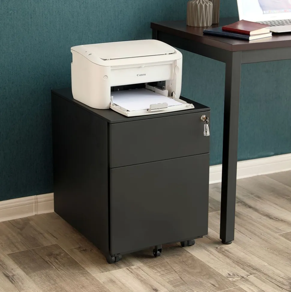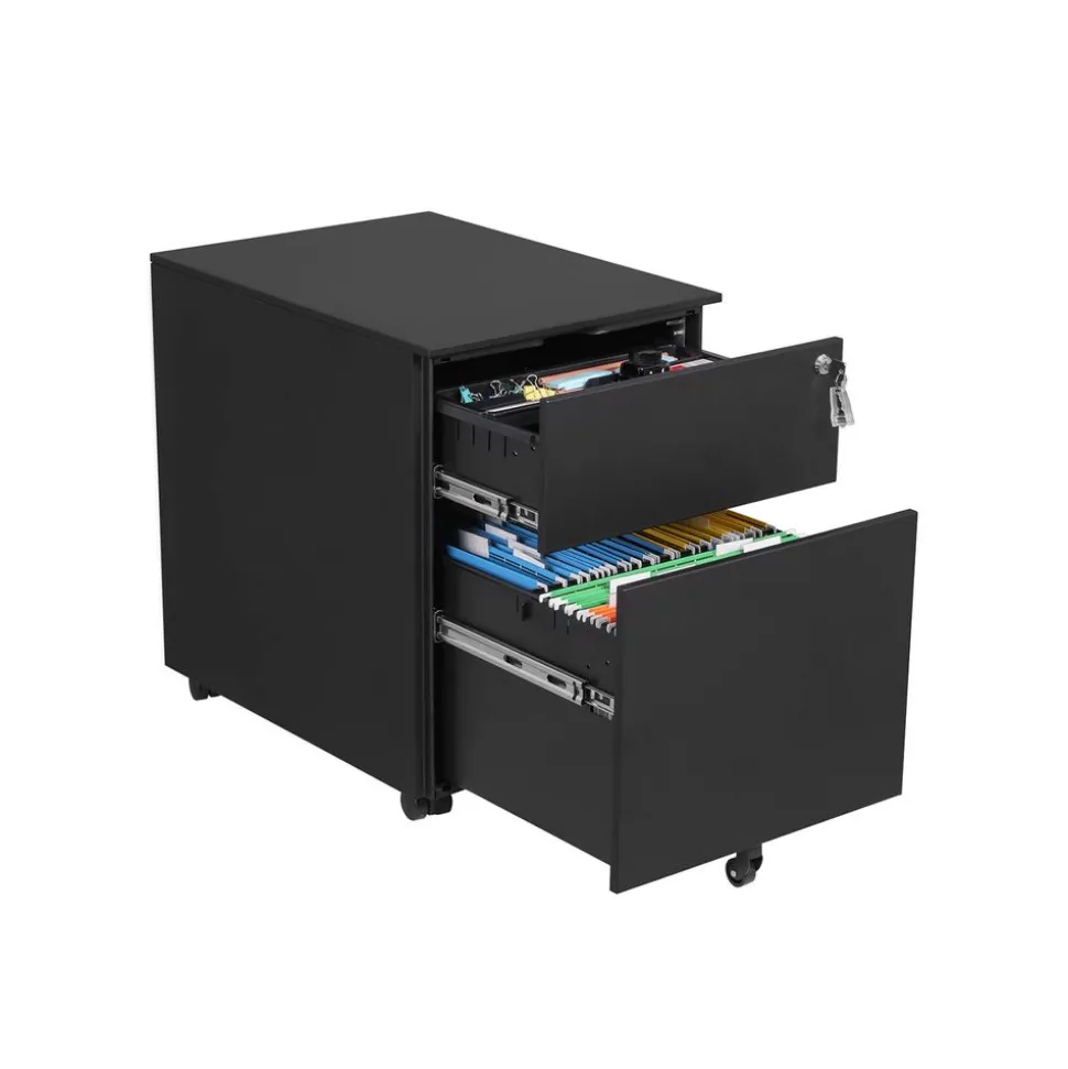 Pratique et durable : Vos papiers, vos documents, vos dossiers et tout ce dont vous avez besoin pendant le travail trouvera sa place dans ce caisson de bureau mobile. Chacun des 2 grands tiroirs a une capacité de charge de 23 kg et glisse sur des rails à pleine extension pour plus de commodité. En plus, la structure en acier du caisson est solide pour que vous puissiez l’utiliser pour des années à venir.