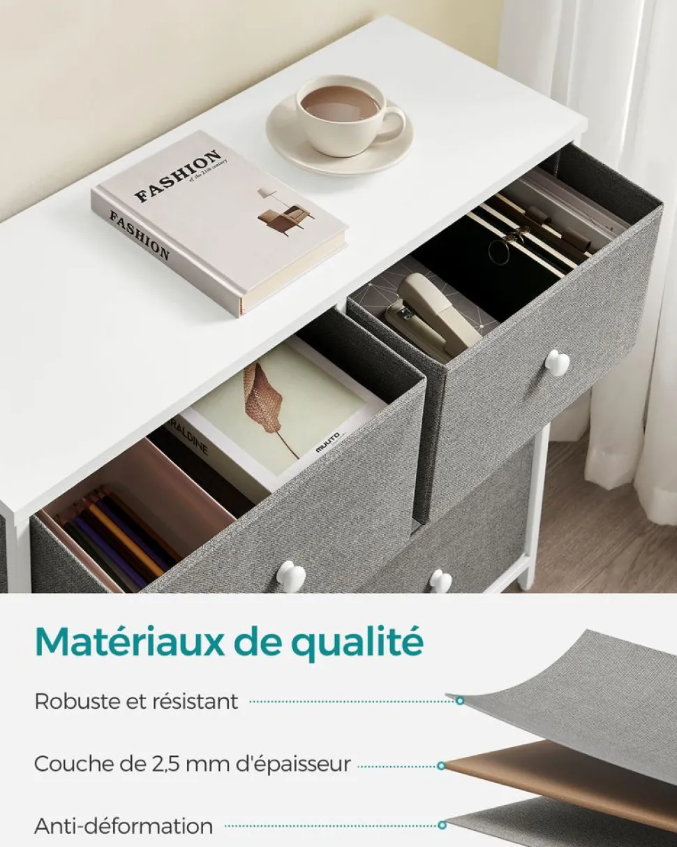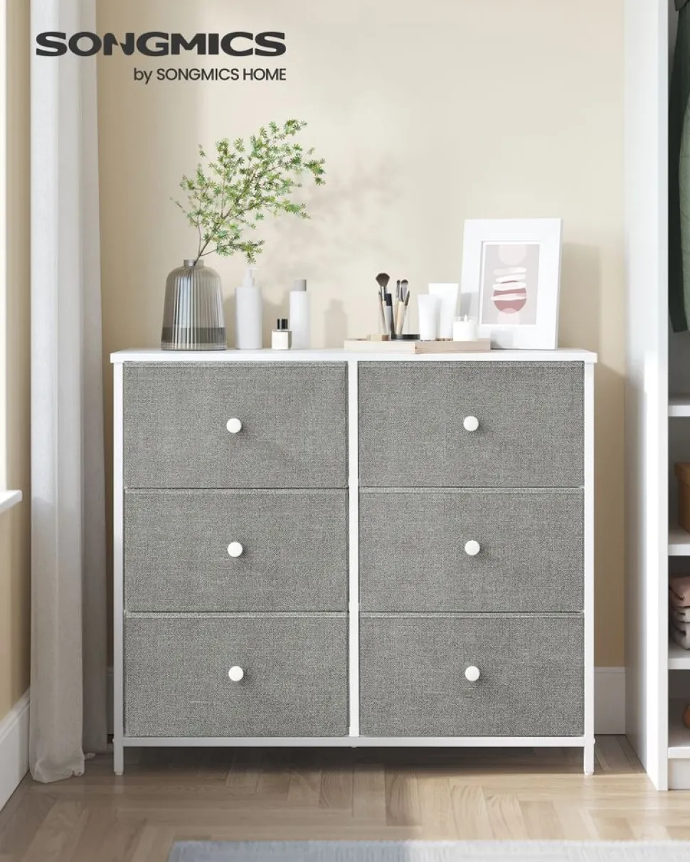 Best Sale SONGMICS Commode avec tiroirs en tissu gris clair et blanc