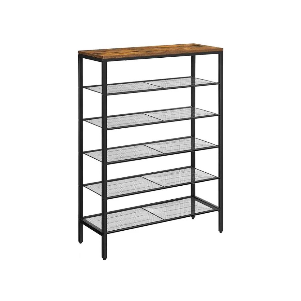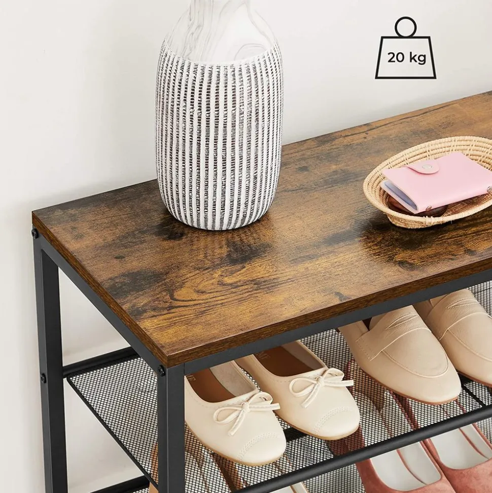 “On l’attend avec impatience” : C’est ce que diront vos chaussures lorsqu’elles verront ce porte-chaussures. Le cadre en acier noir adouci par un marron rustique crée un charme chaleureux. Vos chaussures vont être bien accueillies