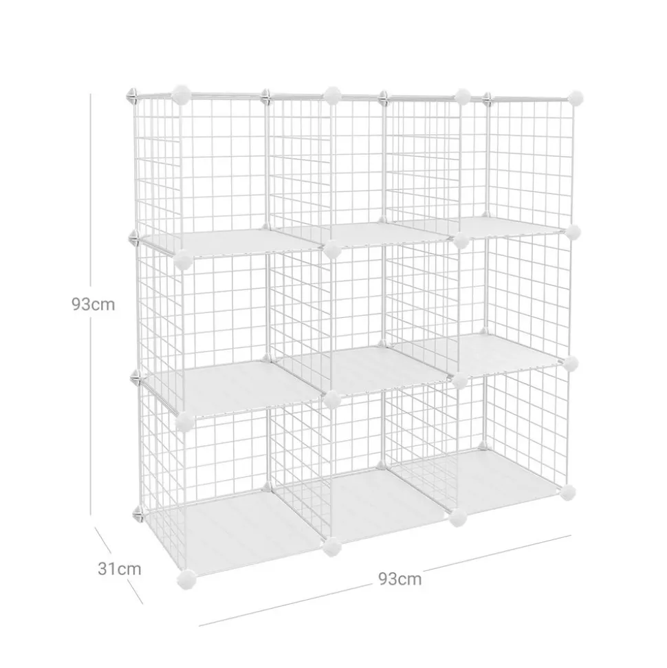 Structure spéciale: Notre étagère en treilles de 9 compartiments vous offre la possibilité d’assembler le produit selon vos besoins. Les suggestions de modèles sont présentées dans le mode d’emploi