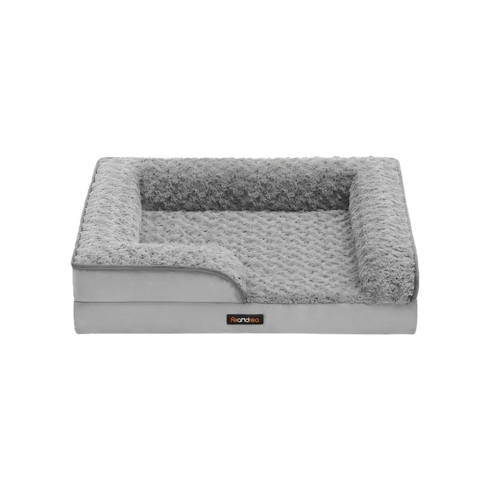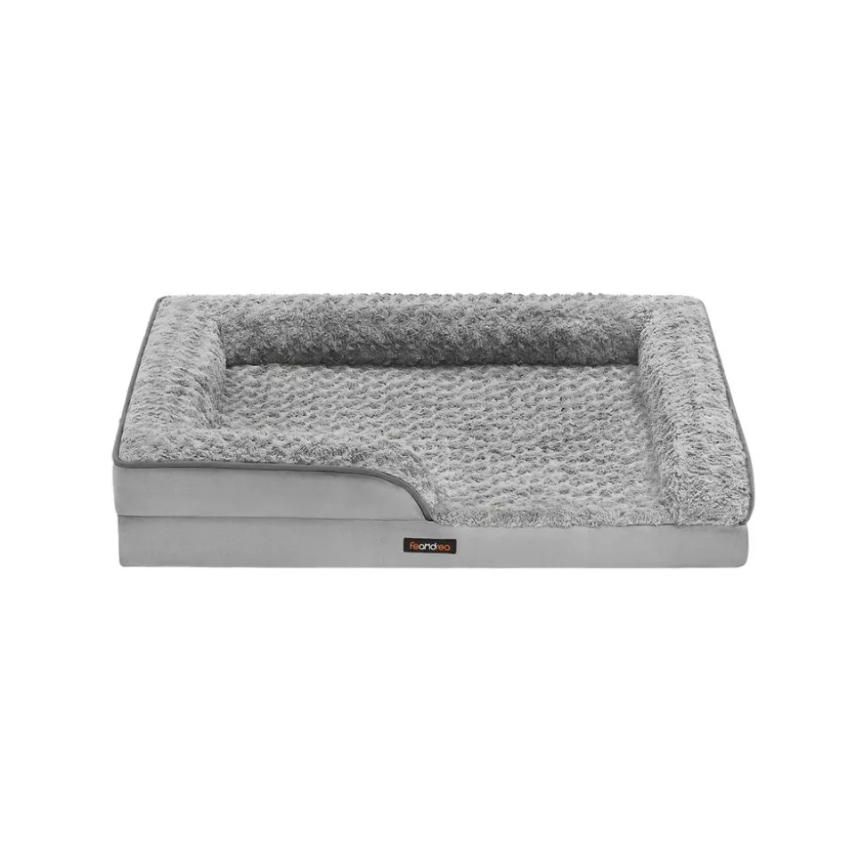 Best Sale SONGMICS Panier pour chien tissu peluche aux motifs roses 71 x 58 x 16 cm gris tourterelle