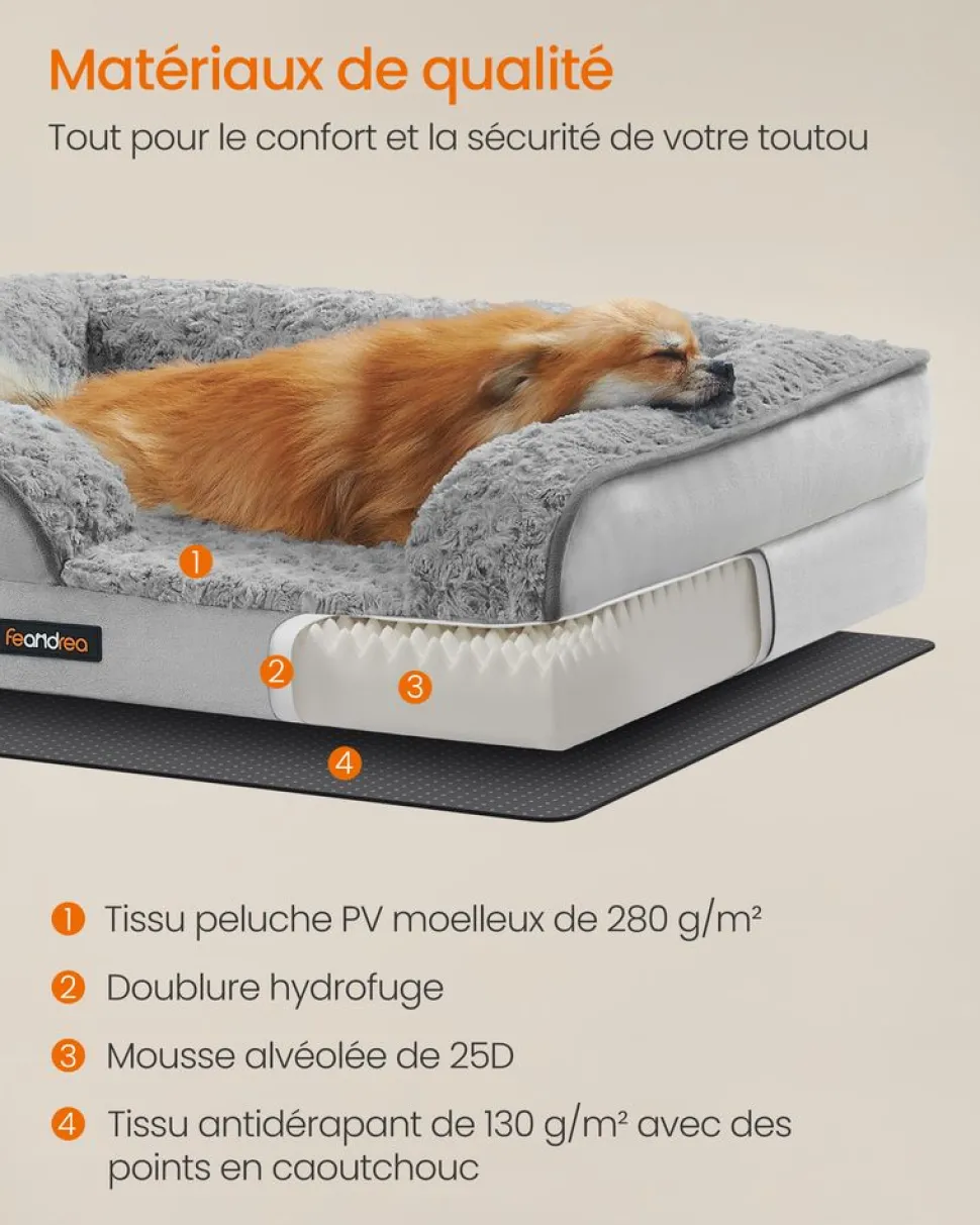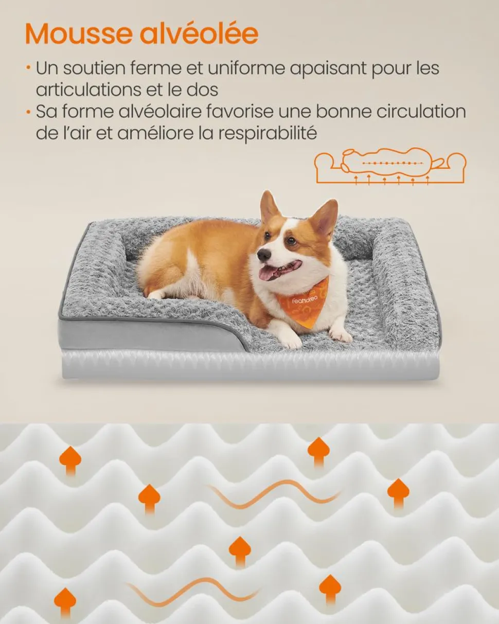 【CONFORT ORTHOPÉDIQUE】Le lit pour chien offre un confort exceptionnel grâce à la mousse alvéolée qui répartit uniformément le poids du chien, réduisant la pression sur les articulations et augmentant la respirabilité, parfait pour les chiens plus âgés