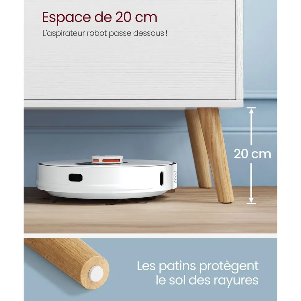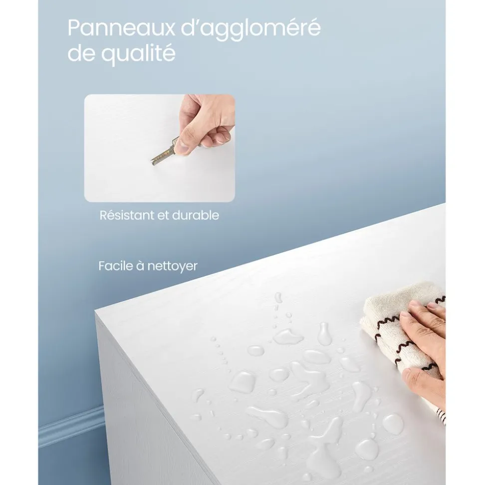 - Les designers de VASAGLE ont créé un catalogue de meubles de salle de bain en vue de fournir un environnement frais et agréable où vous pouvez vous libérer, vous relaxer et passer une bonne journée pleine de gaieté.Matériaux haut de gammeCe meuble sur pied n’est pas seulement destiné à mettre l’élégance et le style en valeur, il est aussi un produit durable et robuste comme vous voulez. Dans ce but, notre meuble de salle de bain se compose de panneaux d’aggloméré recouverts de mélamine blanche matte de première qualité. Les portes sont en panneaux MDF enduites de PVC pour un effet brillant.Nous prenons soin des détailsLes deux étagères internes sont réglables en hauteur pour s’adapter aux objets de différentes tailles. Équipées de souples charnières, les portes ne se ferment pas soudainement.Votre moderne salle de bain recherche cette armoire de rangement VASAGLE ! Vous pouvez également jeter un coup d’œil sur d’autres modèles de la série pour créer un style de salle de bain plus cohérent.