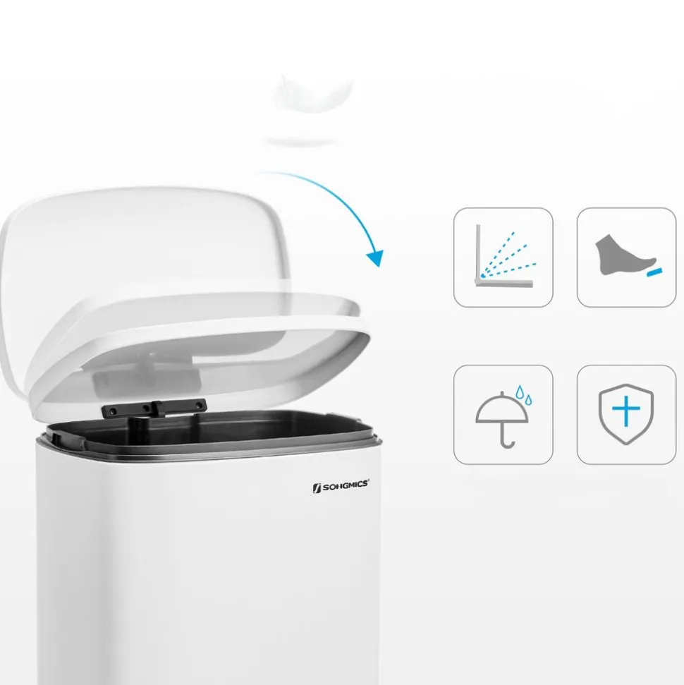 [Une poubelle peut aussi être belle] Ce n’est pas parce que c’est une poubelle qu’elle ne doit ressembler à rien. Sa couleur blanche et ses lignes épurées font de cette poubelle à pédale de 50L un élément design dans votre cuisine[Toute douce] Même si elle est fabriquée en métal rigide, cette poubelle sait faire preuve de douceur. Son mécanisme permet au couvercle de se fermer doucement, lentement et surtout silencieusement ![Gardez-la ouverte] Vous débarrassez la table ? Ouvrez le couvercle en plein, il reste en l’air pour jeter beaucoup de choses ! Une petite pression au dessus suffit pour le refermer après utilisation. Rien de plus simple pour une maison toute propre ![Seau pratique] Cette poubelle est dotée d’un seau amovible avec trou pour maintenir le sac en place. Si votre sac se craque et se renverse accidentellement, pas de panique ! Retirez tout simplement le seau intérieur pour le nettoyer[Ce que vous obtenez] une poubelle de 50L pratique grâce à un seau intérieur, un couvercle à charnière et une pédale. Votre cuisine toute propre vous dit merci !