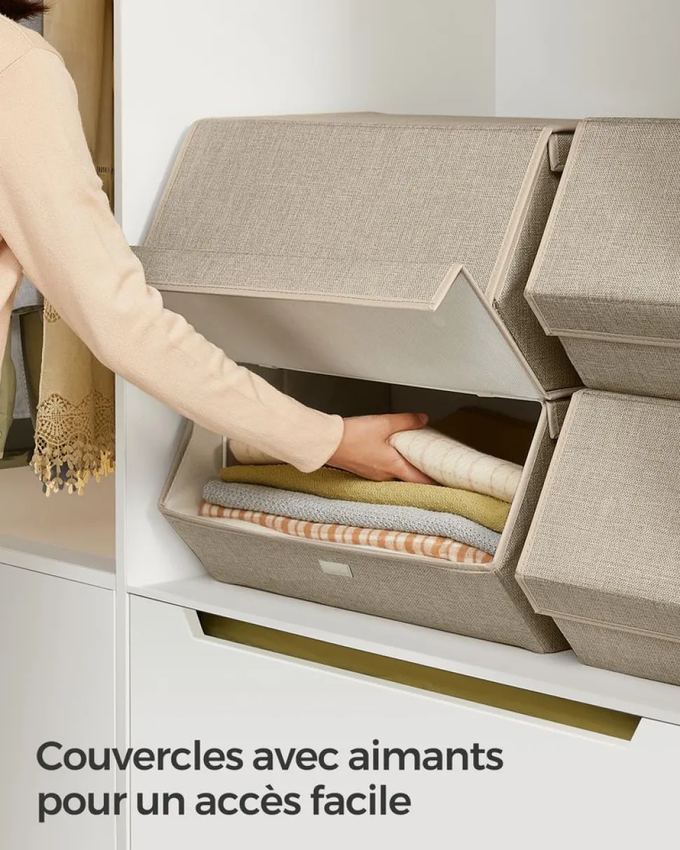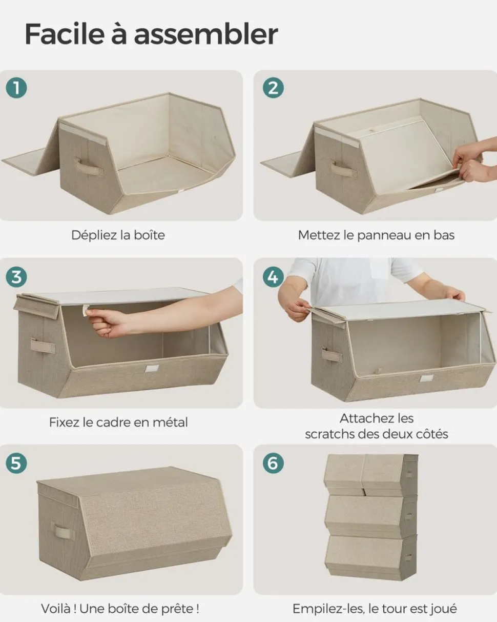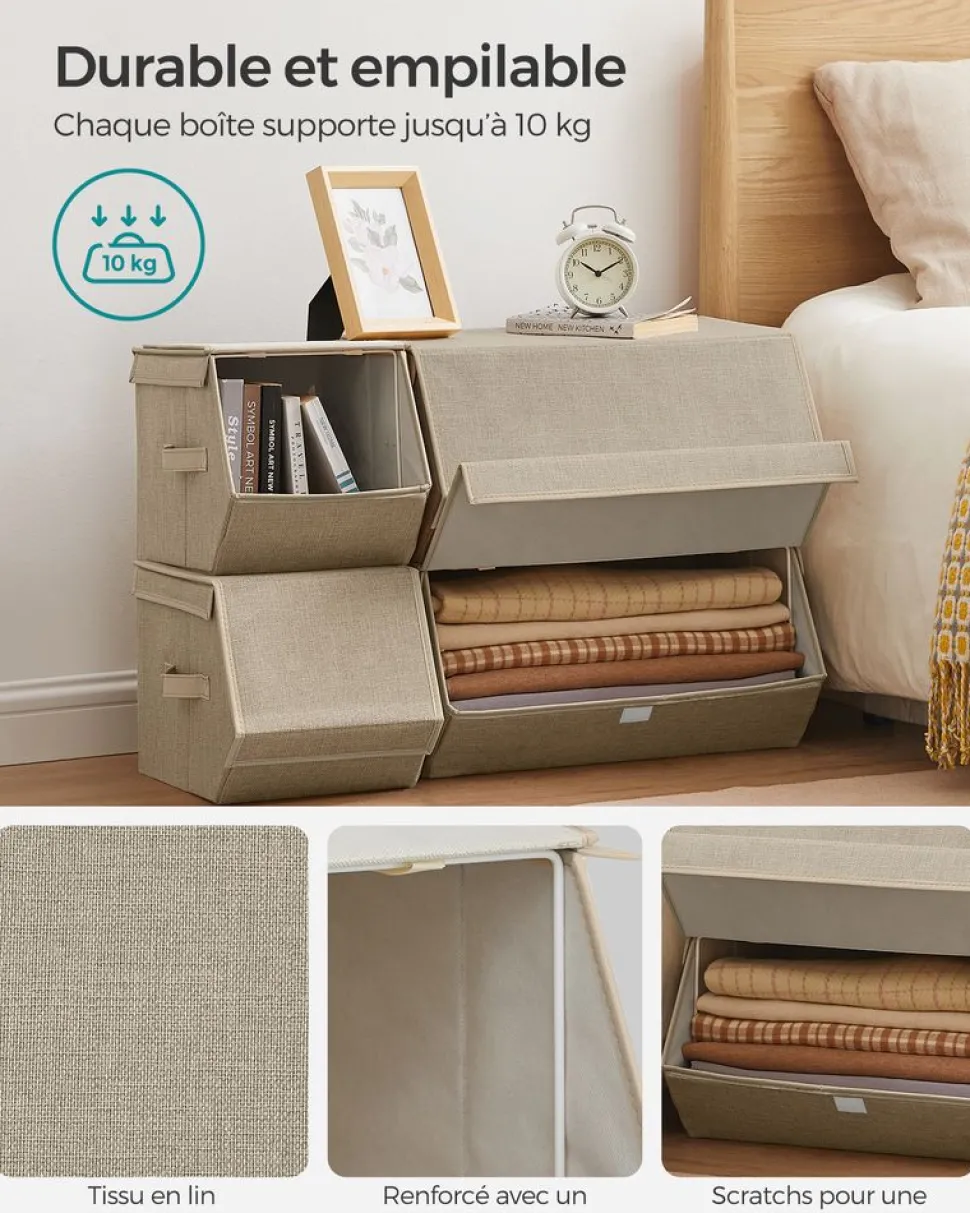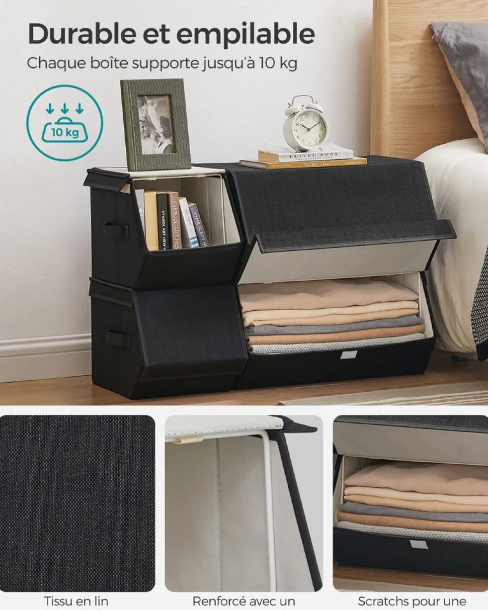 STRUCTURE RÉSISTANTE : Les parois sont renforcées par des cartons rigides de 2 mm d’épaisseur. Vous n’aurez pas à vous soucier de l’affaissement des boîtes. Vos vêtements sont protégés à l’intérieur sans se froisser