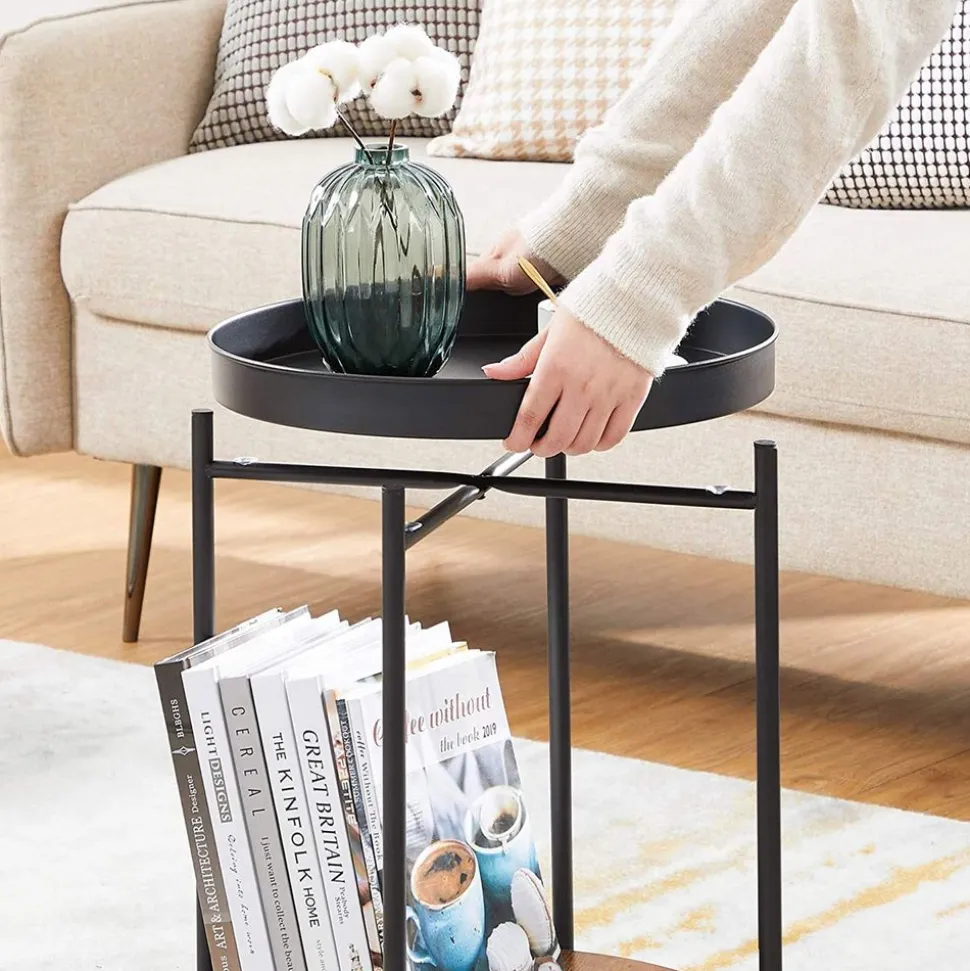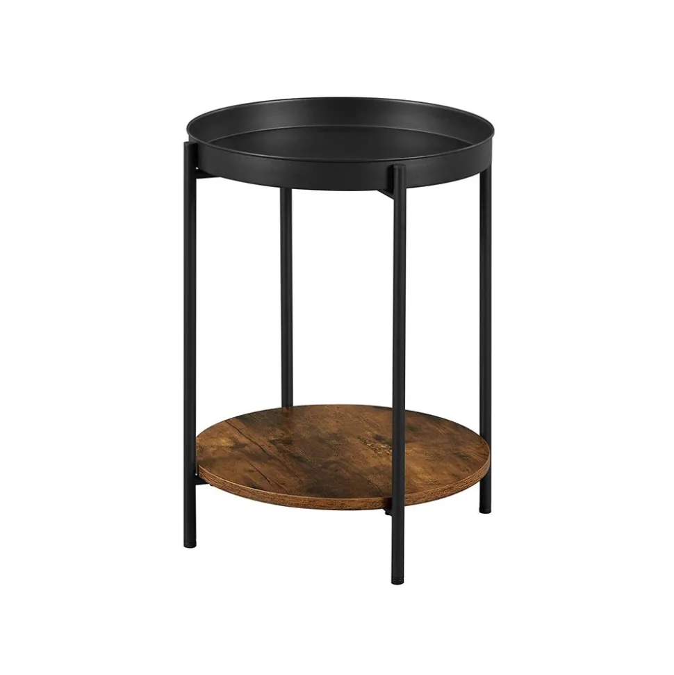 HEUREUSEMENT, VOUS L’AVEZ TROUVÉ ! Cette table d’appoint possède un cadre en métal noir, un dessus rond et une étagère marron rustique en bas. Elle allie élégance, simplicité et créativité pour réaliser le salon de vos rêves