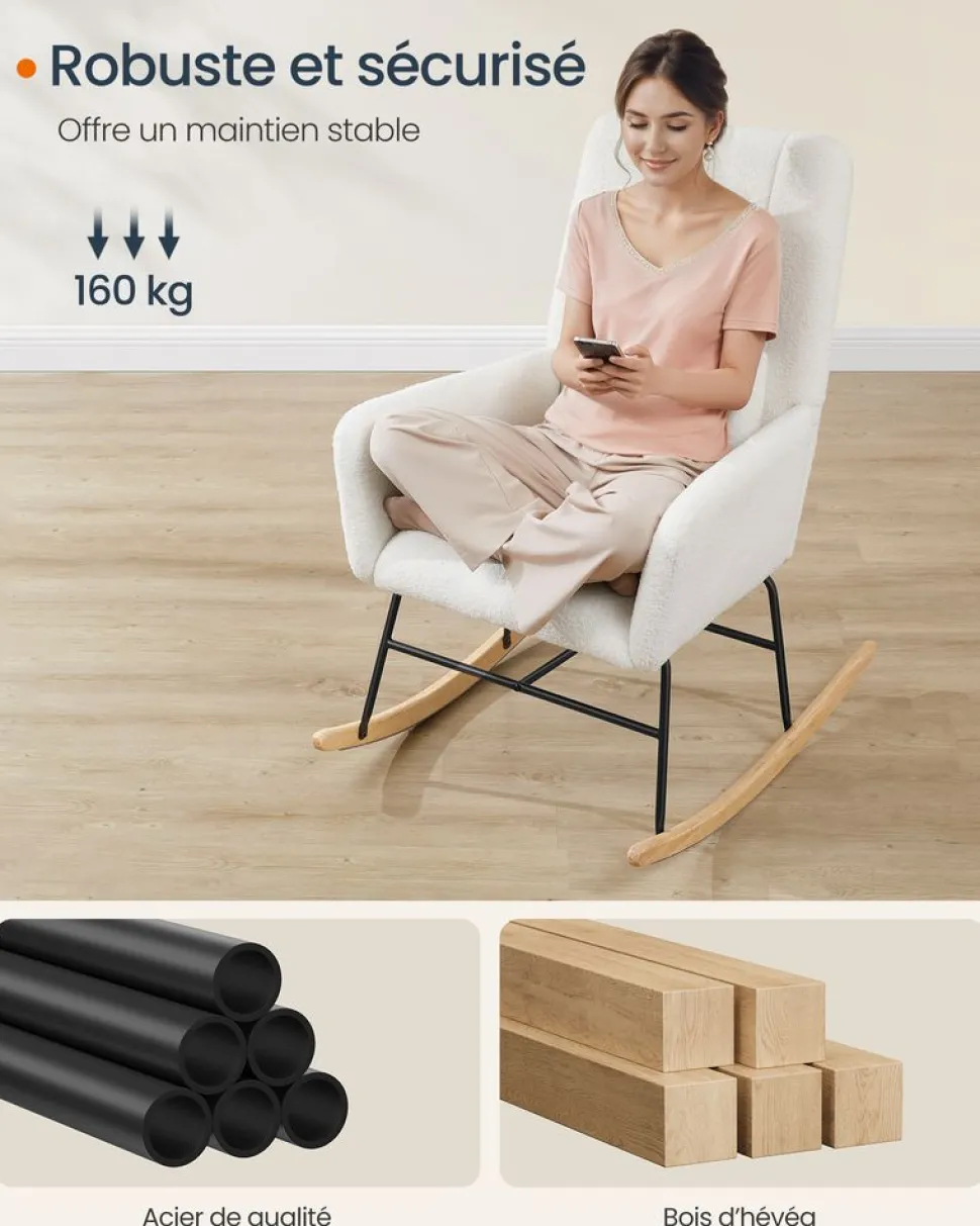 【POCHE PRATIQUE】Dotée d’une poche latérale pratique pour ranger votre téléphone portable, vos livres ou d’autres petits objets, ce fauteuil à bascule allie fonctionnalité et style, rendant chaque moment de détente encore plus agréable