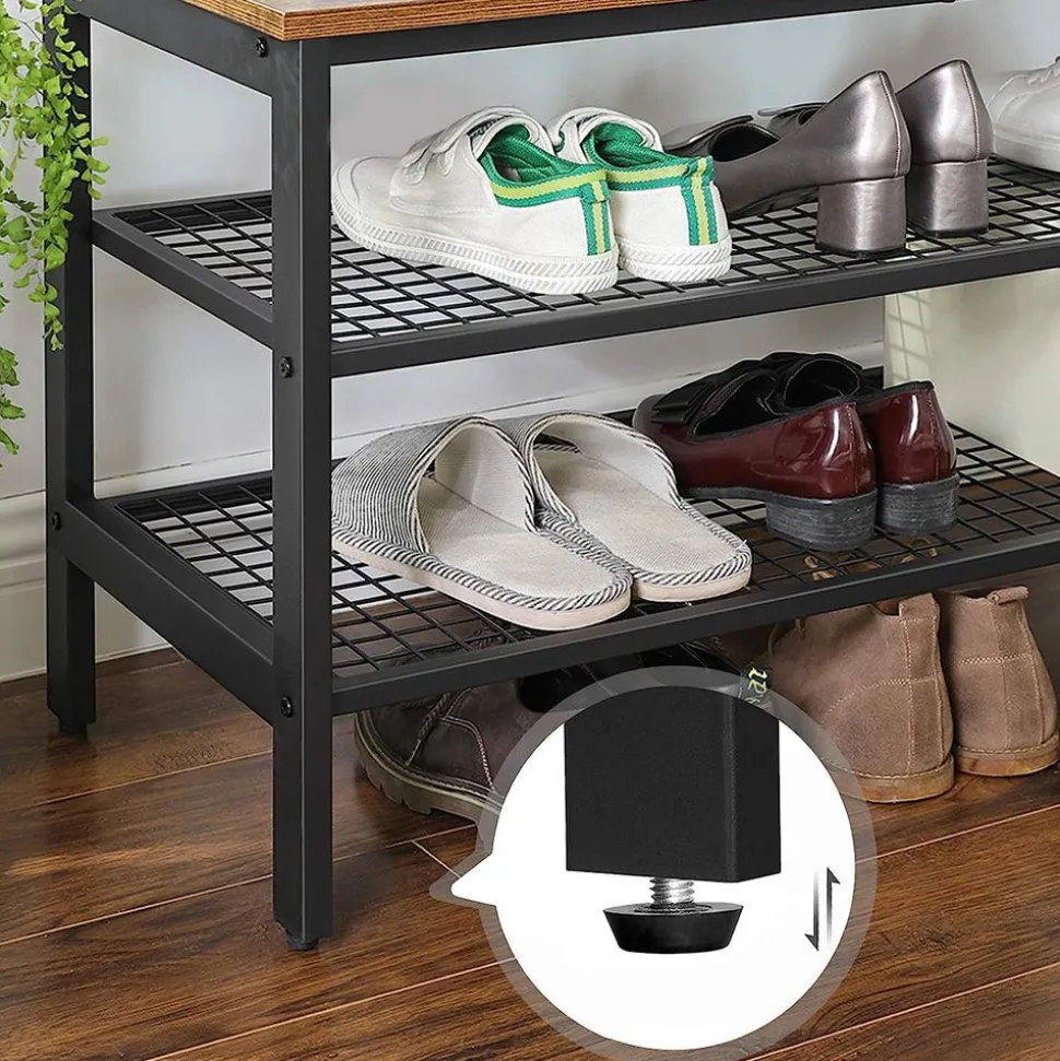 1 BANC, 2 ÉTAGÈRES, 3 POSSIBILITÉS : Les deux étagères en maille stables de ce portemanteau peuvent accueillir une grande variété de chaussures. L’étagère en maille en bas se trouve également à 12,5 cm du sol, ce qui laisse de la place pour les escarpins, les chaussures de sport et bien d’autres en dessous