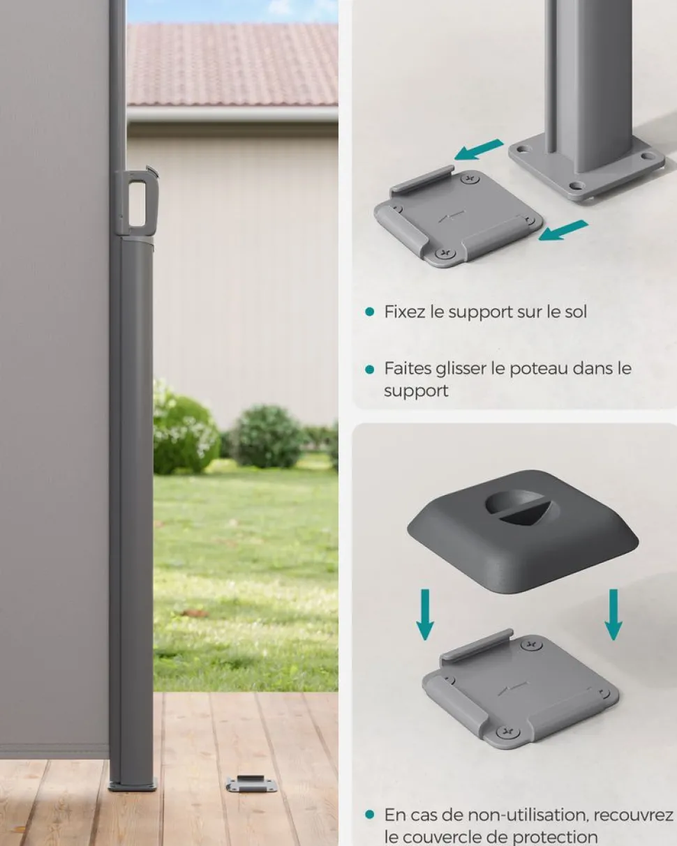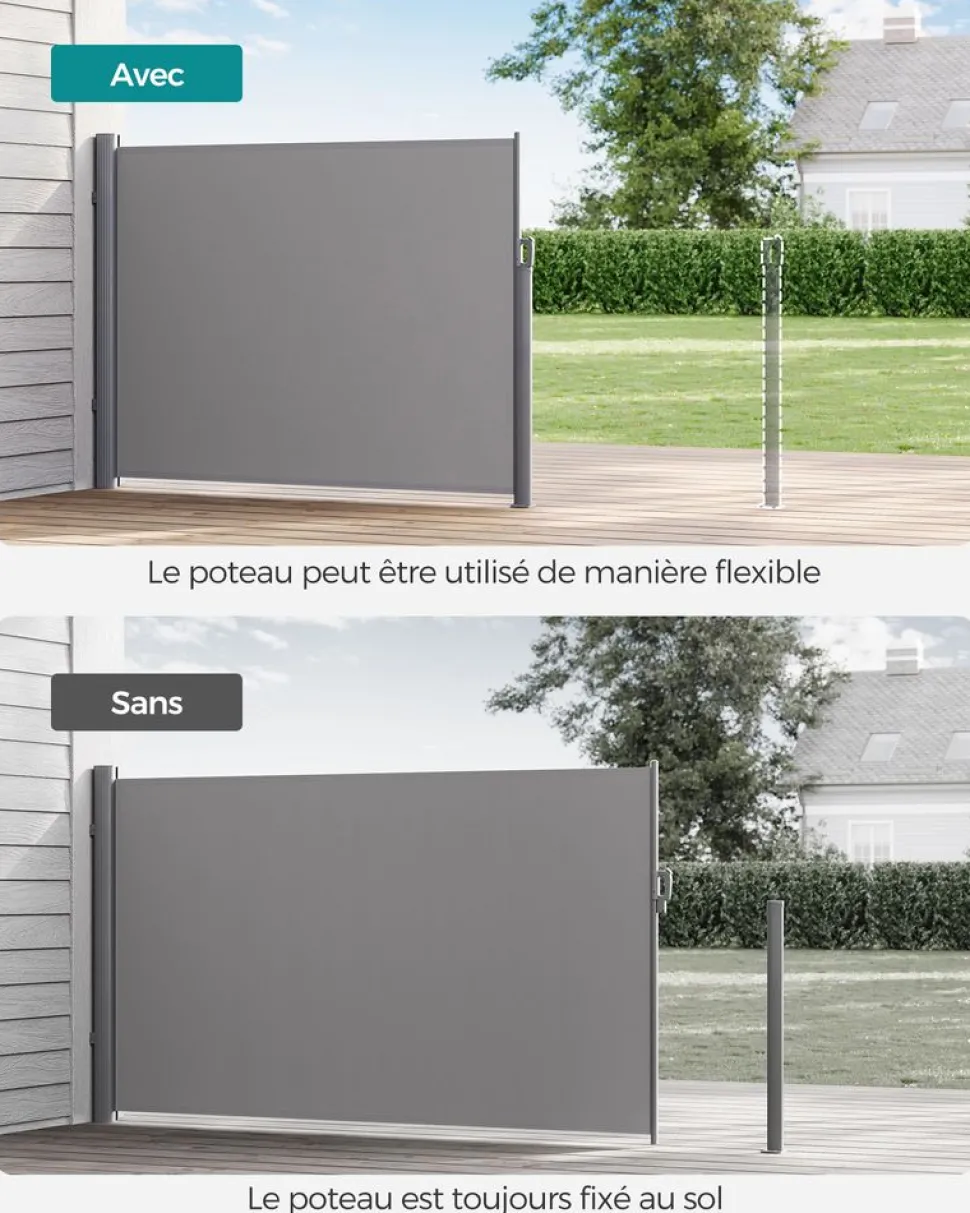 - Voulez-vous profiter du beau temps en famille dans votre jardin tout en évitant les regards indiscrets des voisins ? Ce piquet vous permet d’installer le store latéral SONGMICS sur le sol de votre jardin. Plus besoin de creuser des trous dans le sol dur.