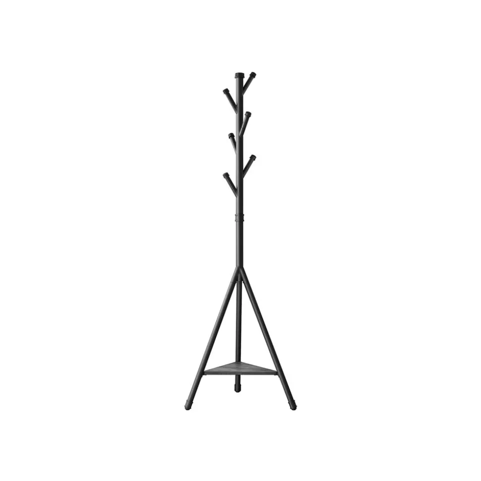 STABILITÉ ET SOLIDITÉ : Le portemanteau dispose d’une grande stabilité grâce à une base triangulaire. Des patins en plastique viennent aussi protéger vos sols contre les rayures