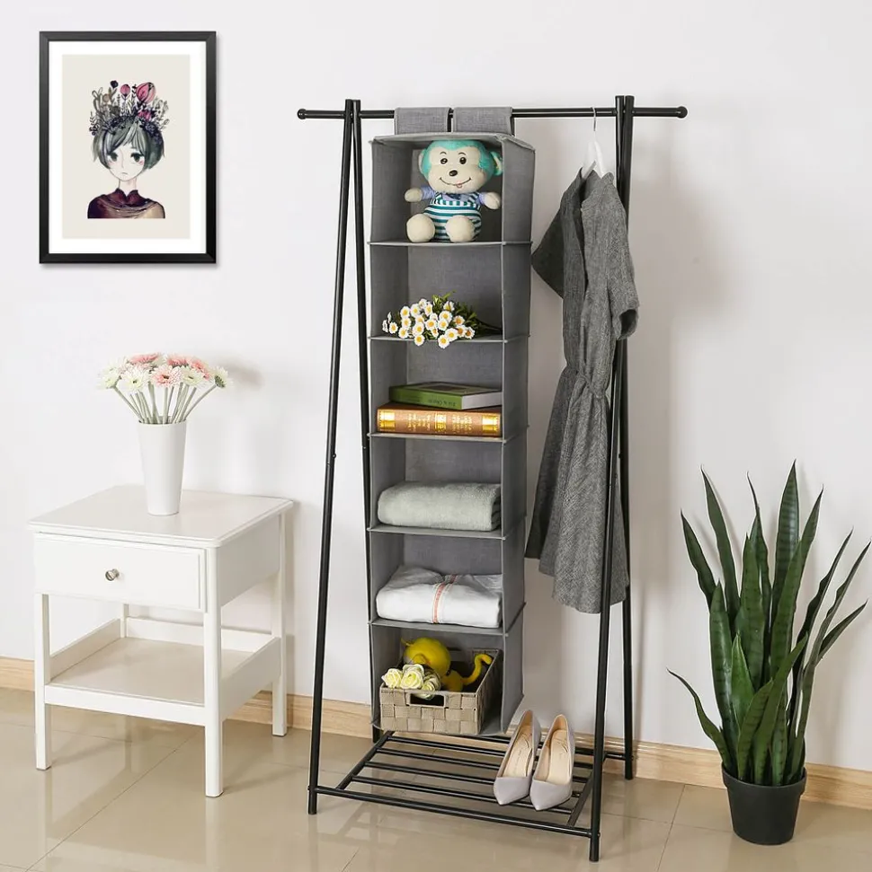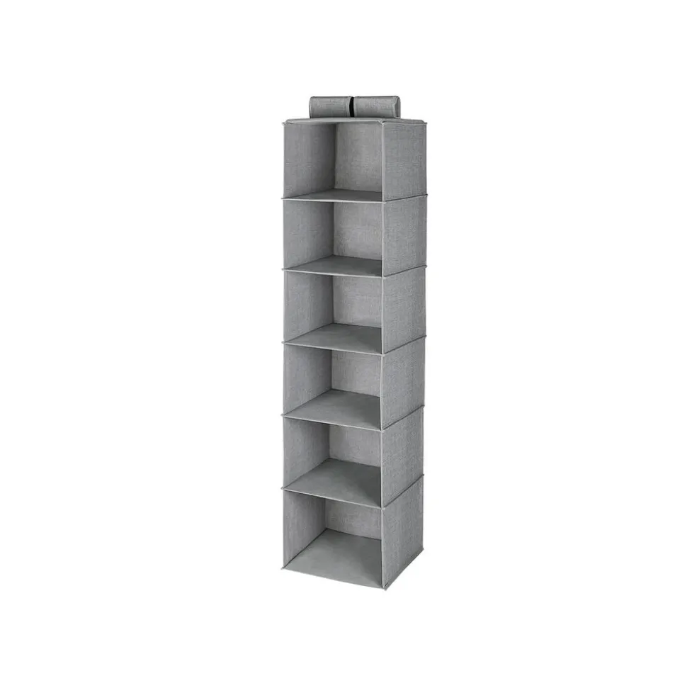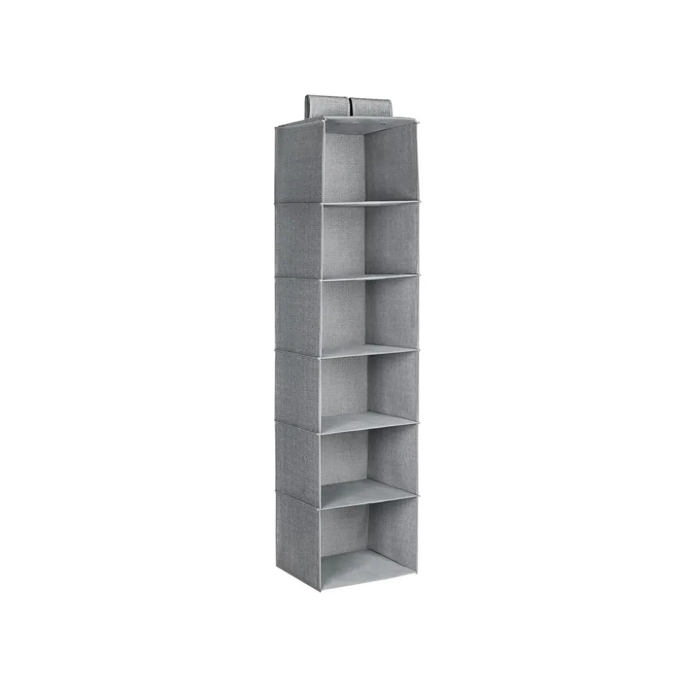 Cette étagère à suspendre en tissu permettra de créer une colonne de rangement dans votre penderie en la suspendant à une tringle. Elle est suffisamment large pour pouvoir y ranger des vêtements et de petits objets. Composée de 6 casiers, c’est un bon moyen d’agrandir l’espace de rangement du dressing, de la chambre des enfants, du camping car, etc.
