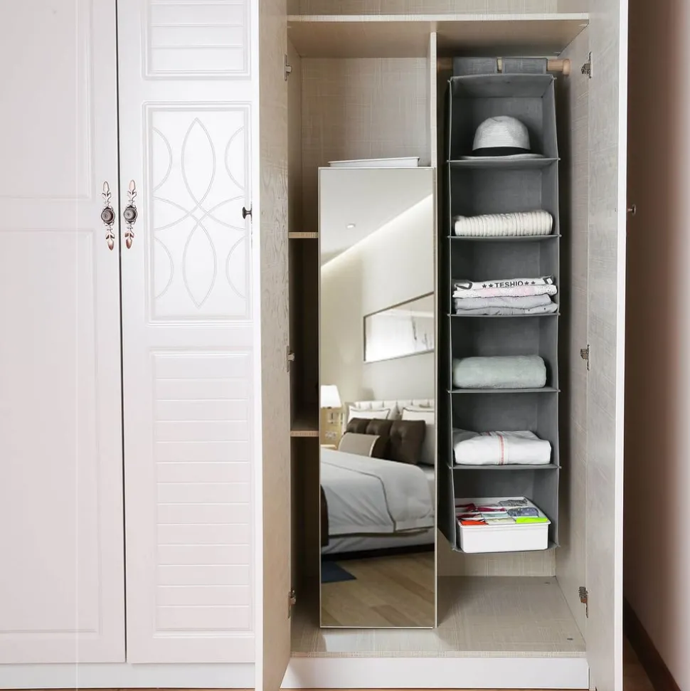 Crée un espace de rangement supplémentaire, facilite le tri et permet de s’organiser – 6 compartiments permettent de ranger à la verticale (30 x 130 x 30 cm) dans le placard à vêtements – Idéal pour ranger les vêtements, les serviettes, les gants, les chaussettes, etc. – Stop au fouillis dans le placard.