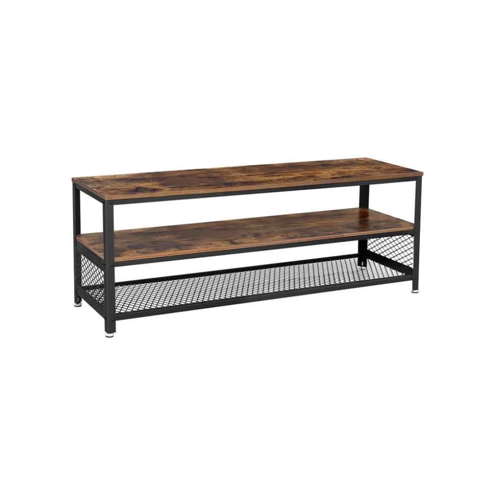 Ce que vous obtenez : Une table basse minimaliste avec une surface rustique et un rangement ouvert spacieux qui ne manquera pas d’ajouter une touche de charme industriel à votre salon