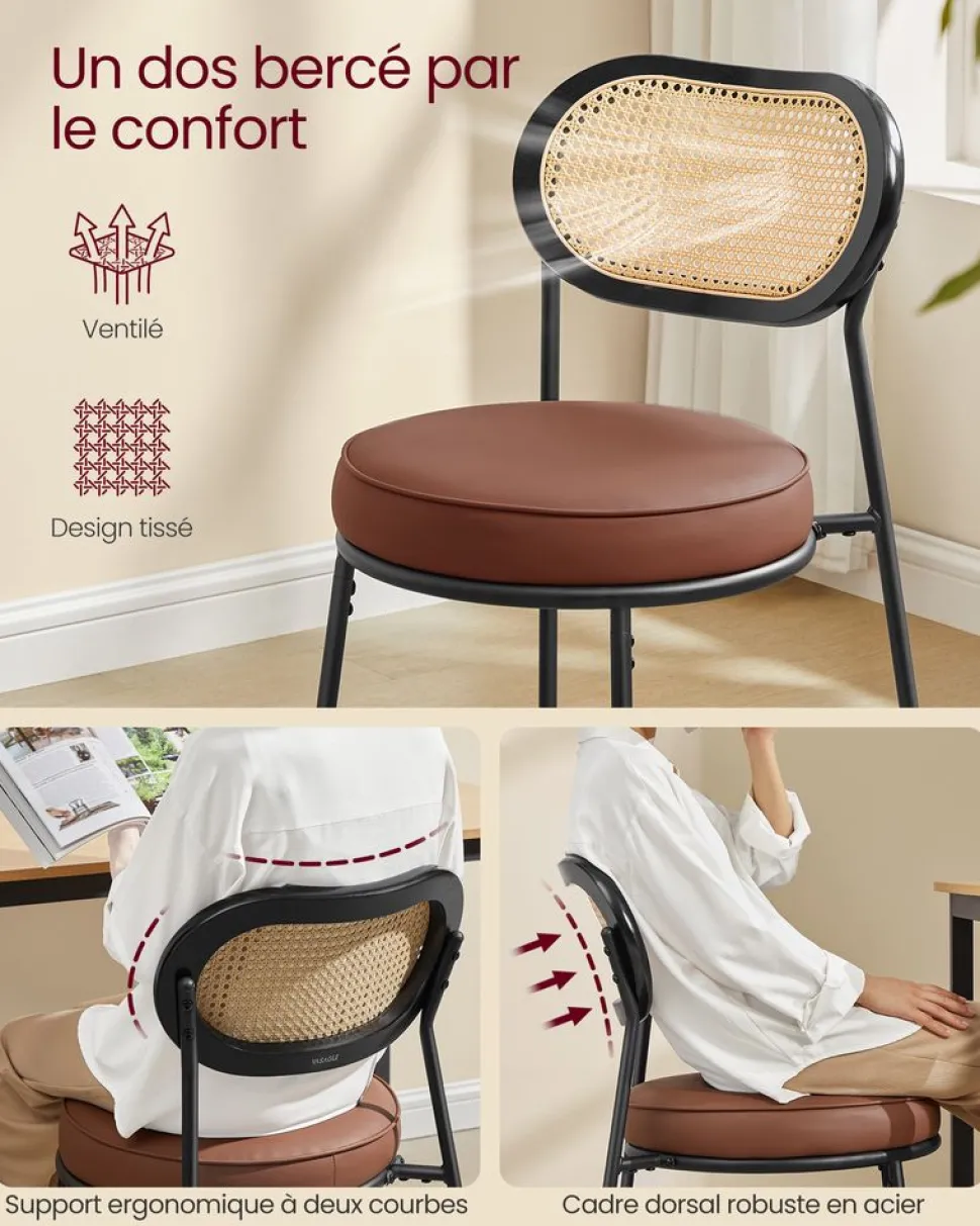 C’est l’heure de l’indus : Des panneaux marron rustique, du métal noir intense et un dossier ajouré apportent une nouvelle saveur à votre bar, votre cuisine ou votre salle à manger. Vos convives vont adorer le goût industriel de ces tabourets !
