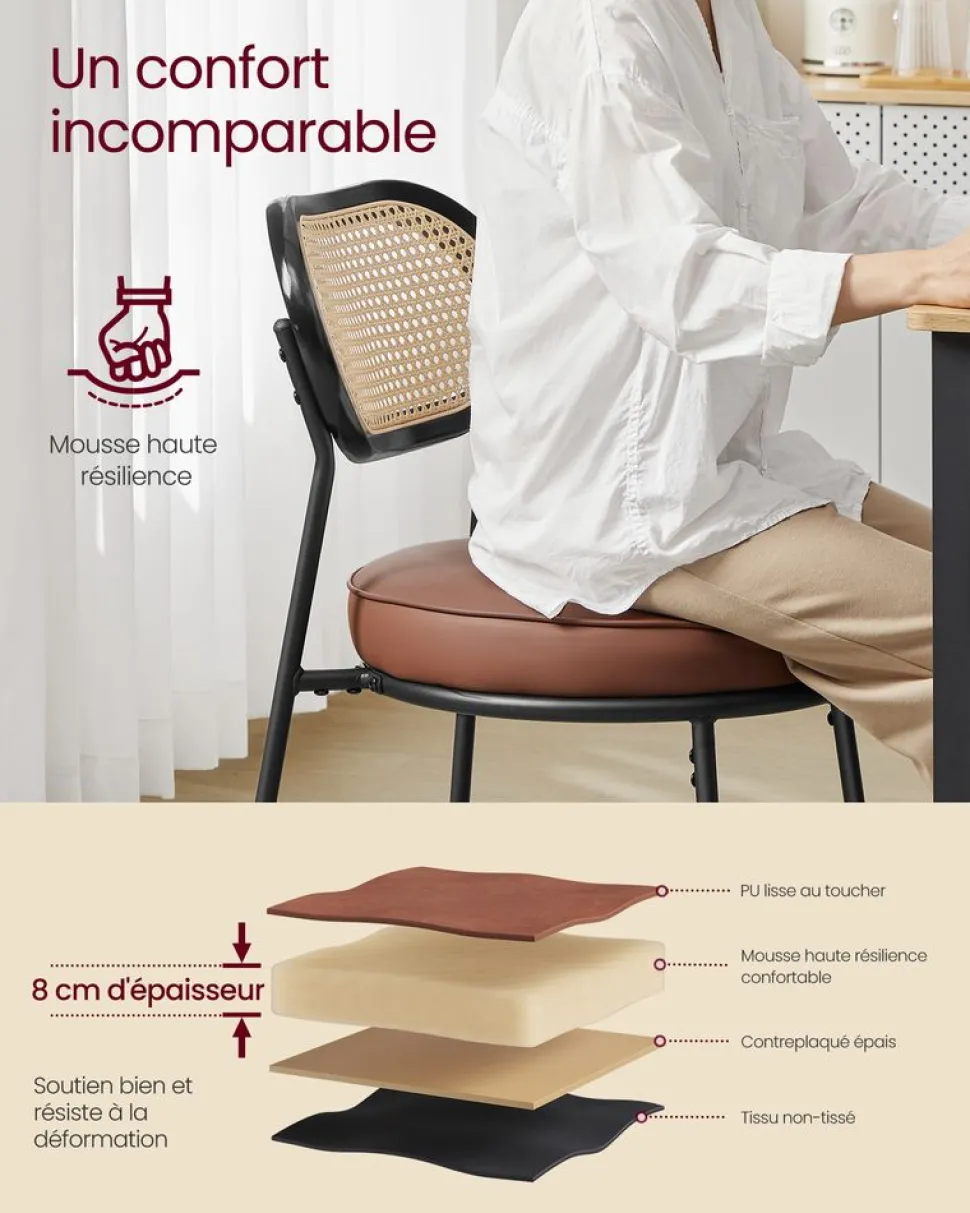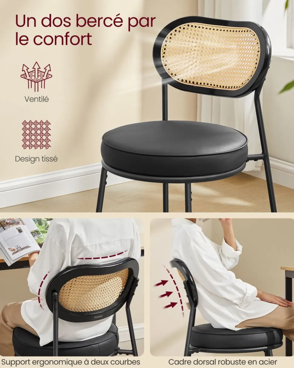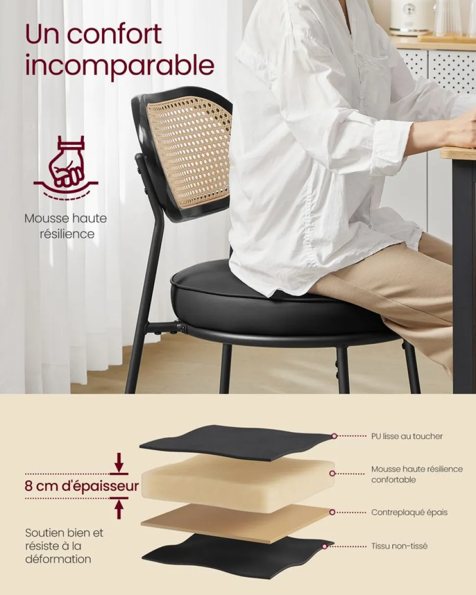 – Capacité de charge statique maximale de chaque tabouret : 130 kg -