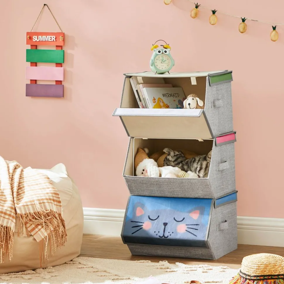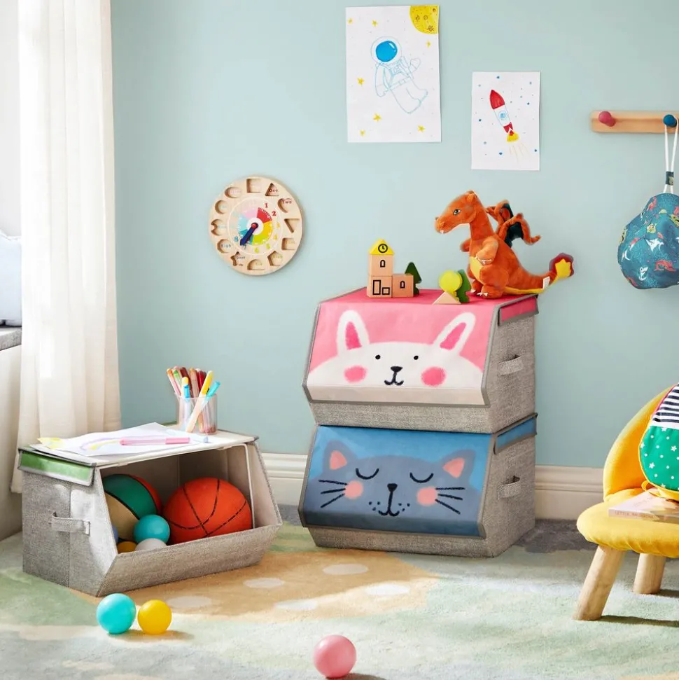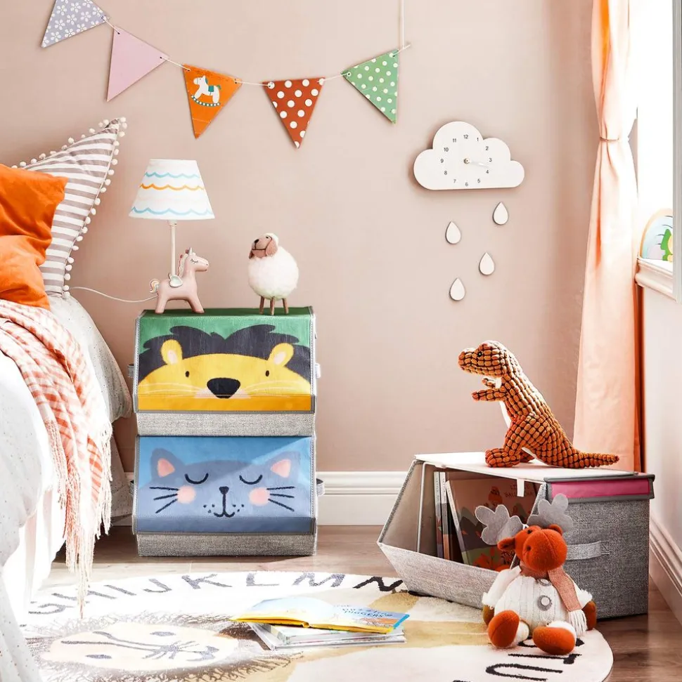 Fiables ? Oui ! Les jouets sont importants pour la croissance d’un enfant. C’est pourquoi ces boîtes de rangement sont fabriquées en carton et en tissu non-tissé et sont renforcées par un cadre métallique. Elles accompagnent votre enfant pendant longtemps