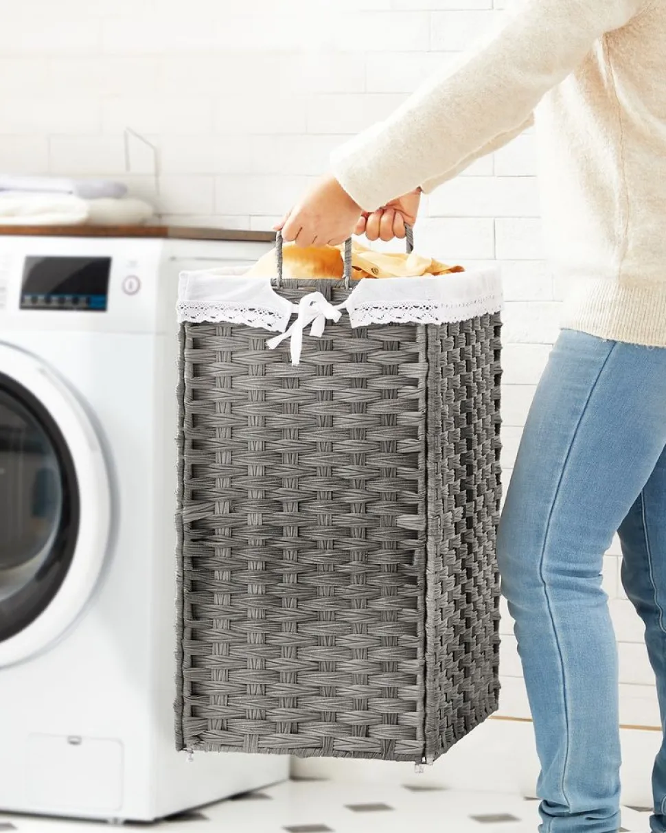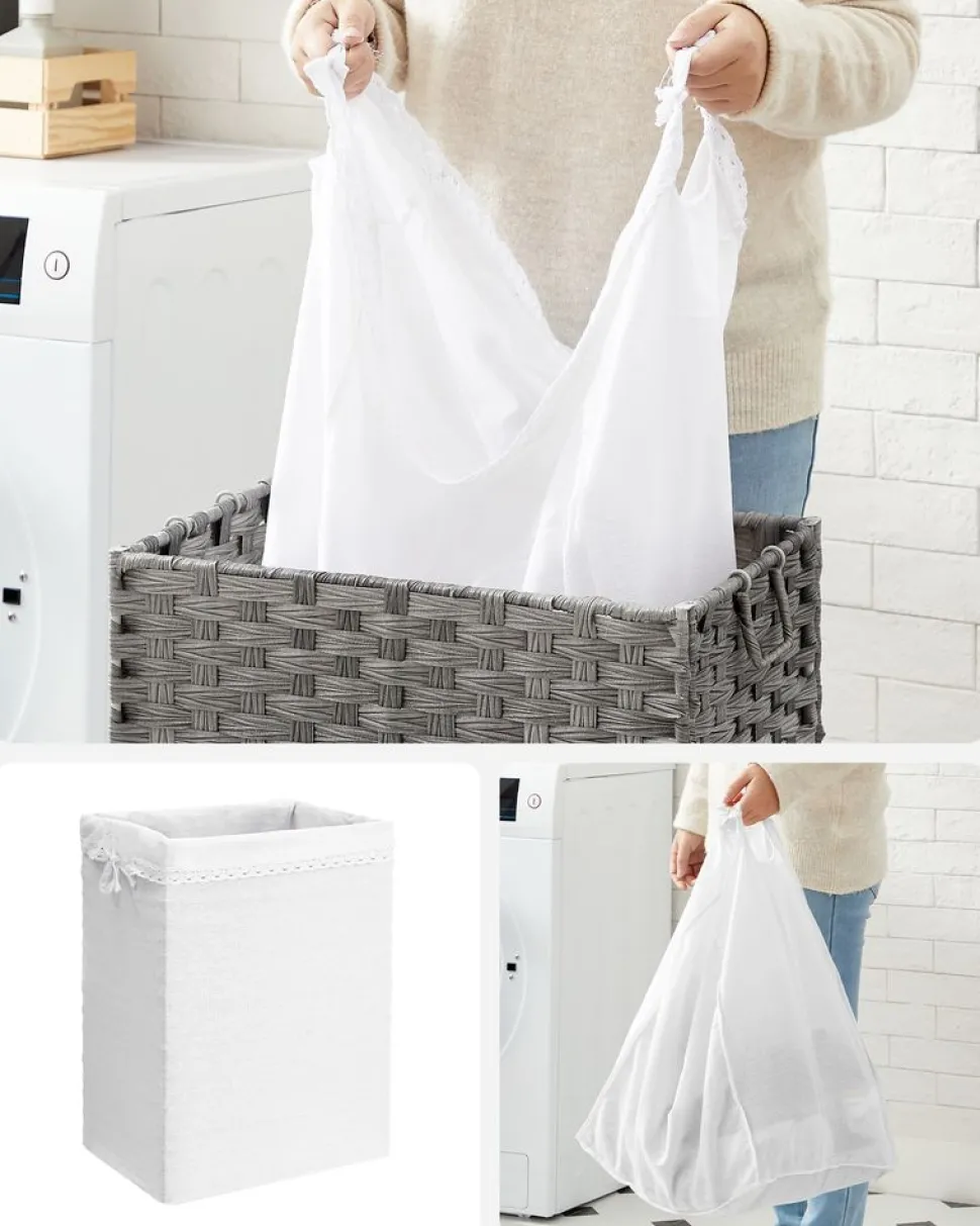 [Grand volume de 90L] Ce panier à linge mesure 40 x 35 x 65 cm et offre un volume de 90 litres pour stocker le linge sale, il peut être également utilisé pour ranger des serviettes, des couvertures, des draps ou des vêtements hors saison[Rangement par type] Cette corbeille à linge sale est dotée d’un séparateur qui vous permet de trier les vêtements de différents types ou couleurs. Les pochettes latérales en filet sont destinées aux petits vêtements ou aux détergents[Facile à déplacer et à vider] Ce panier est doté de poignées courtes pour le soulever et de poignées longues pour le porter sur l’épaule, pratique pour l’emmener jusqu’à la machine. Il y a une autre poignée en bas pour vider le sac[Tient debout et est facile à nettoyer] Fait en tissu polyester de 200 g/m² avec revêtement en PE 170 g/m², ce sac à linge tient debout tout seul. La surface est résistante à l’eau et est facile à nettoyer[Pliable et pratique] Ce panier à linge sale se plie à plat lorsqu’il n’est pas utilisé. S’il est suspendu ou porté sur l’épaule, il peut rester fermé pour mettre votre linge à l’abri des regards