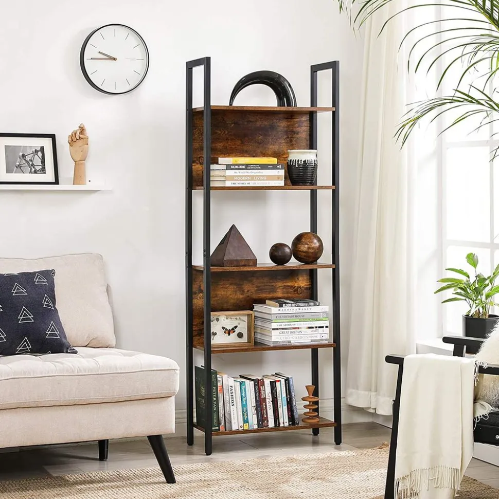 METTEZ EN VALEUR VOTRE INTÉRIEUR : Avec des panneaux bruns vintage et un cadre en acier noir mat, cette étagère présente avec élégance des livres, des souvenirs de vacances, des fournitures de bureau ou des ustensiles de cuisine ! Décidez où la placer !