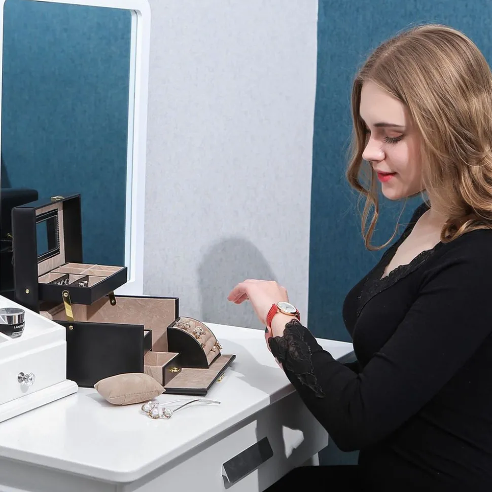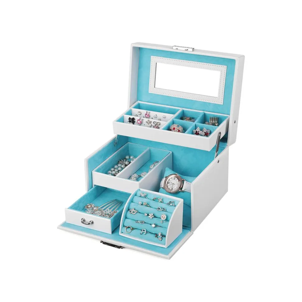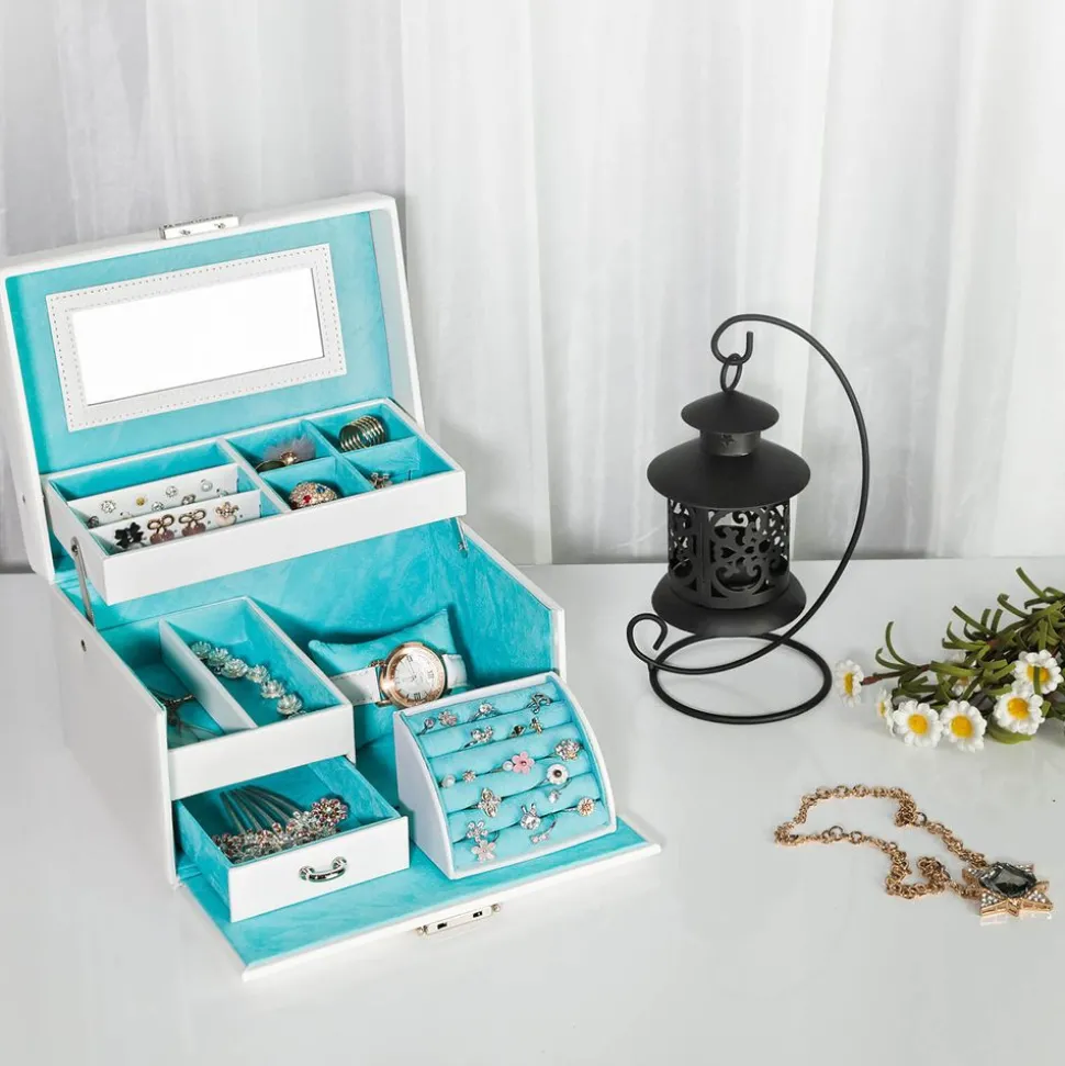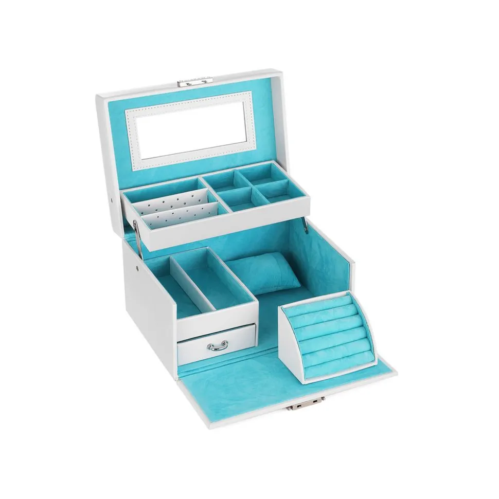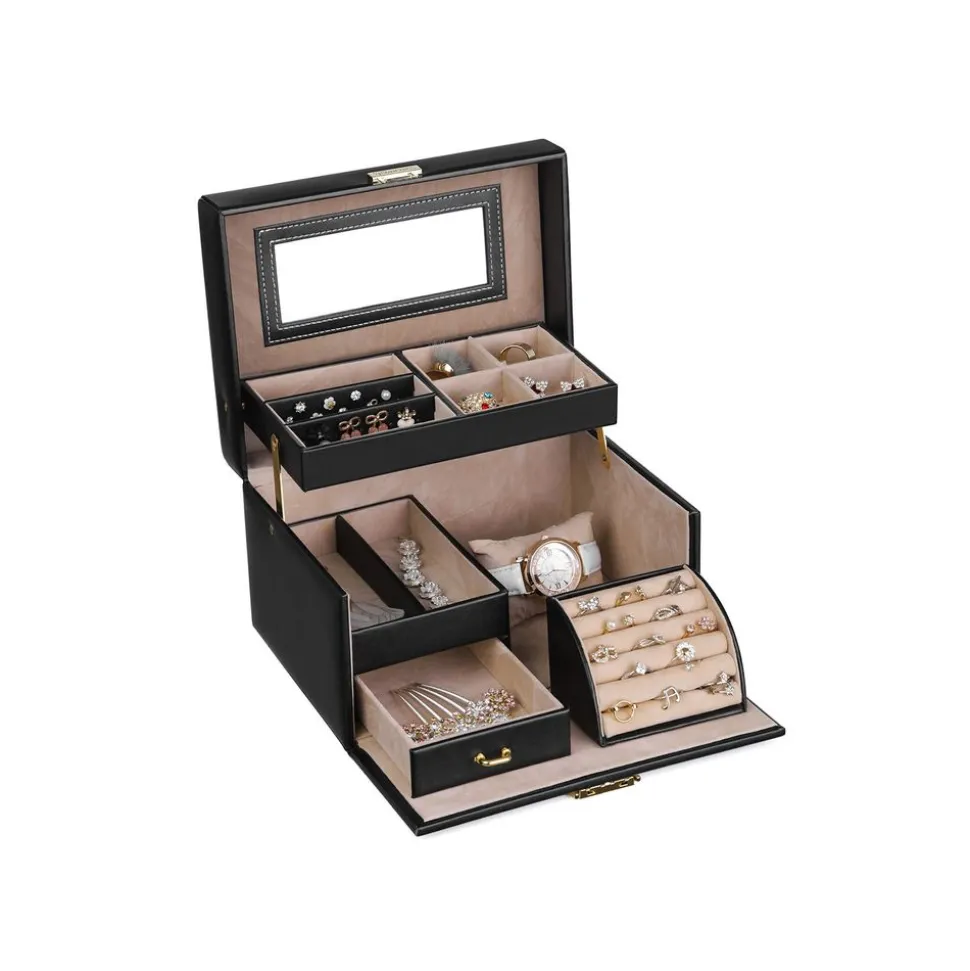 CE QUE VOUS RECEVEZ : Une boîte avec plusieurs niveaux et compartiments pour organiser vos bijoux ainsi que 2 clés pour la serrure
