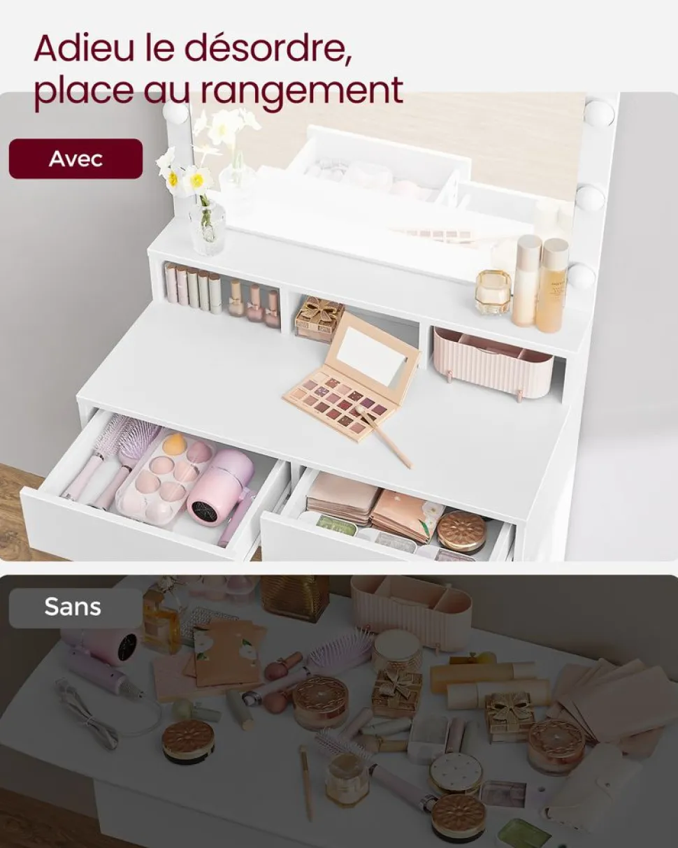 De l’espace à vos côtés : Vos boissons ? Sur le dessus ! De l’espace caché ? Dans la partie rabattable ! Vos livres ? Sur l’étagère du bas. Vos écouteurs ? Dans la pochette en tissu !