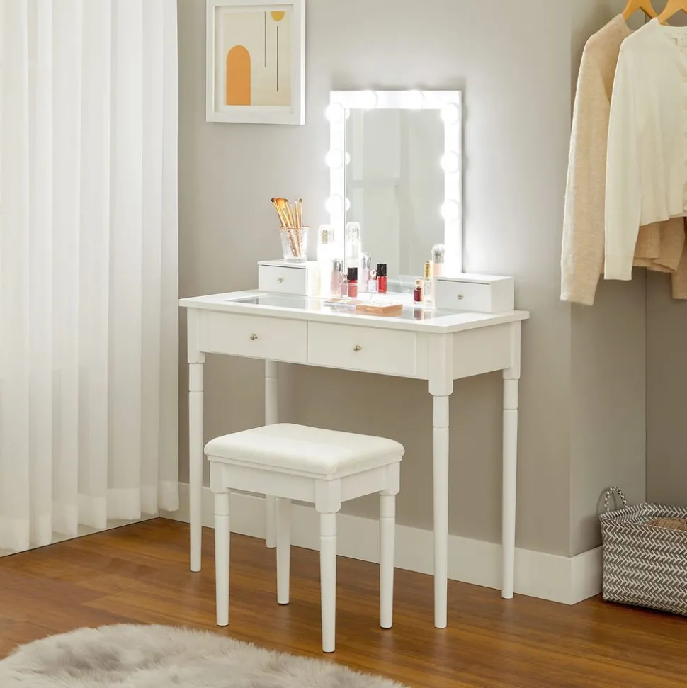 Une surprise : Avec des allures épurées, une finition blanche élégante et un grand miroir, cet ensemble de coiffeuse est un cadeau idéal pour votre bien-aimé(e) qui s’empressera de remplir ses compartiments de trésors
