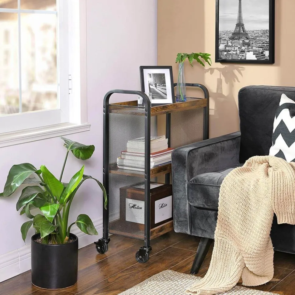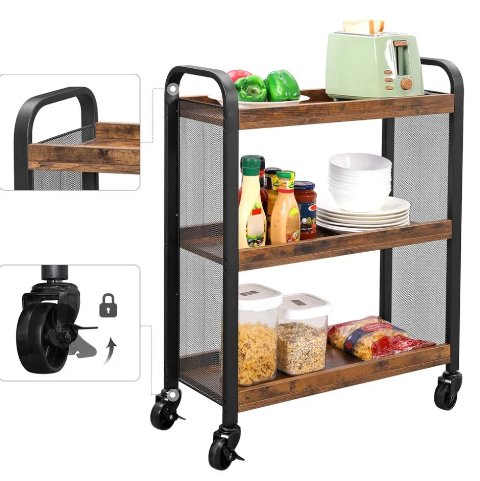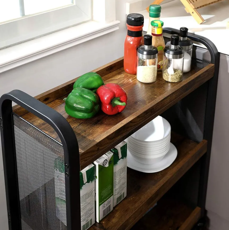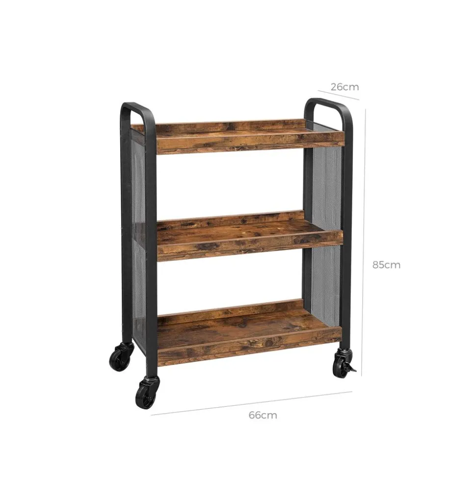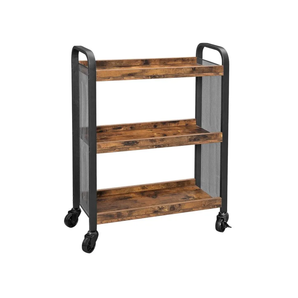 DU STYLE SOUS TOUS LES ANGLES : Quel côté préférez-vous ? Vous préférez les 3 étagères brun rustique ou les panneaux grillagés latéraux ? Chaque côté attirera votre attention, peu importe la façon dont vous installerez ce chariot de service !