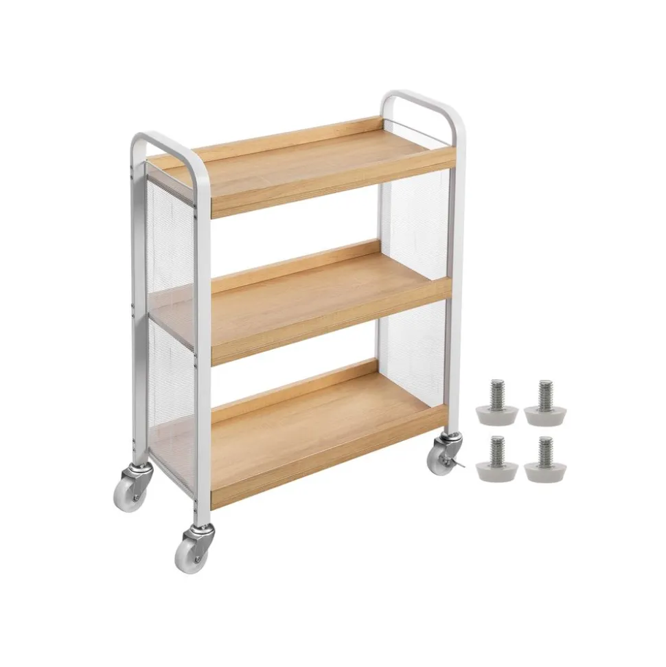 VOTRE SOUS-CHEF COMPÉTENT : Personne ne veut un chariot encombrant qui se met en travers de votre chemin quand vous êtes occupé à préparer le repas ! Ce chariot de cuisine compact de 66 x 26 x 85 cm avec 3 étagères utiles vous permet de travailler efficacement