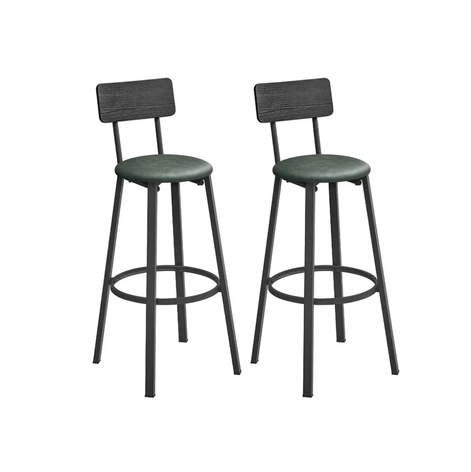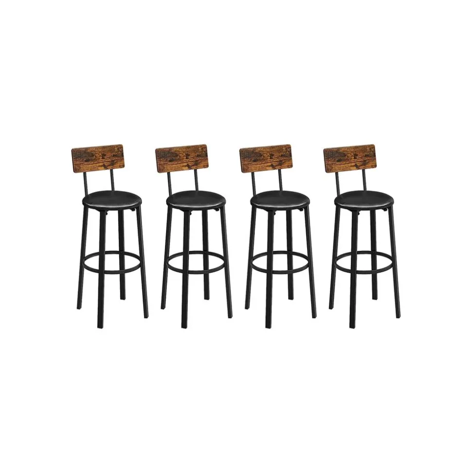 Confort et design au rendez-vous : Avec un équilibre entre confort et style indus, ces tabourets de bar sont rembourrés de mousse, recouverts de PU, munis de repose-pieds circulaire et de dossiers bas. Tout pour s’asseoir confortablement !