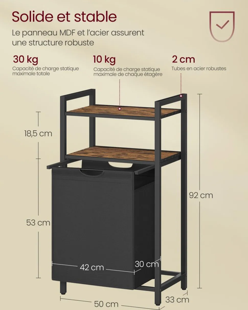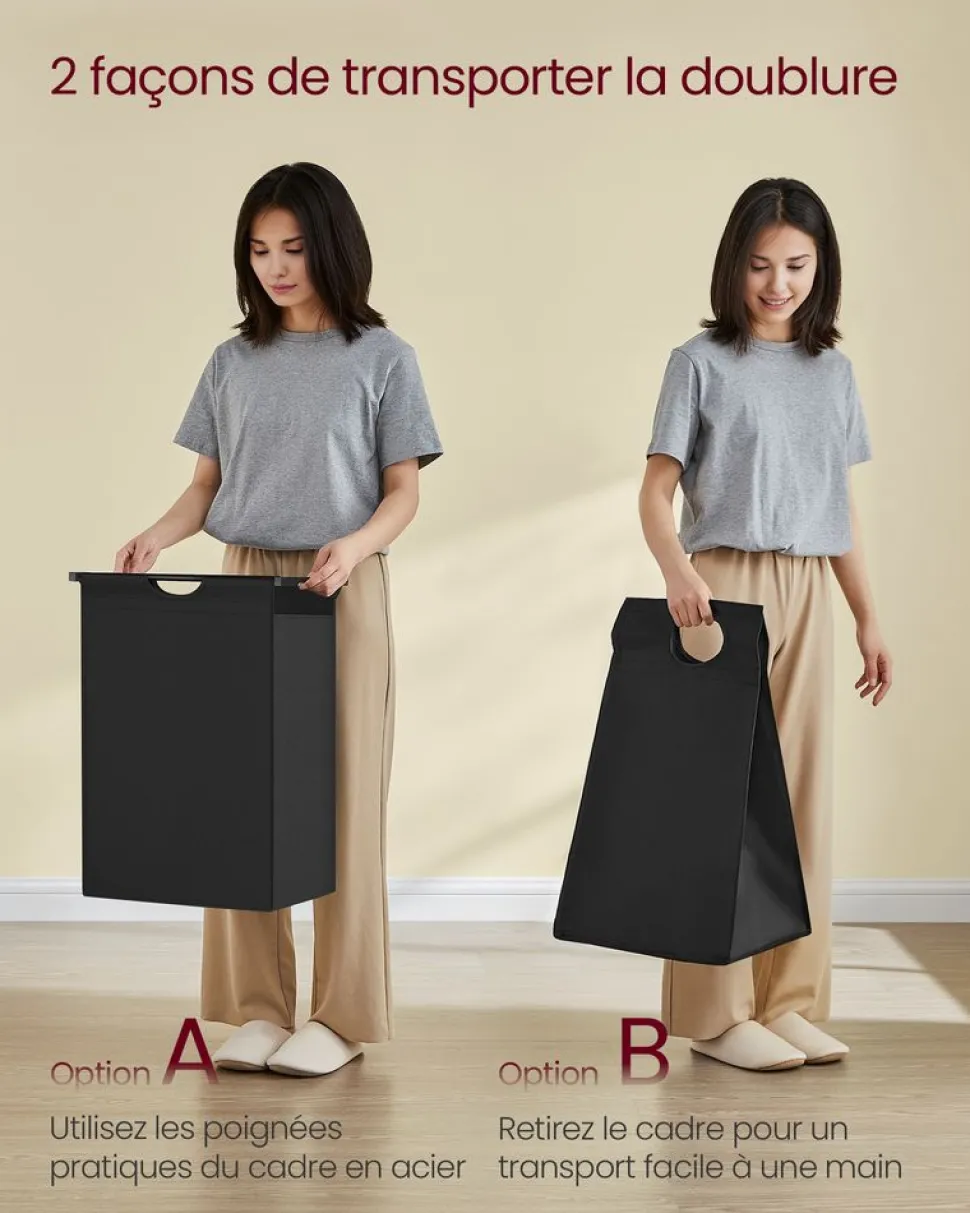 【ROBUSTE ET DURABLE】Fabriqué en tissu Oxford 600D et renforcé par des tubes en acier de 12 mm de diamètre, cette corbeille à linge robuste supporte jusqu’à 15 kg. Elle constitue une solution stable et durable pour vos lessives