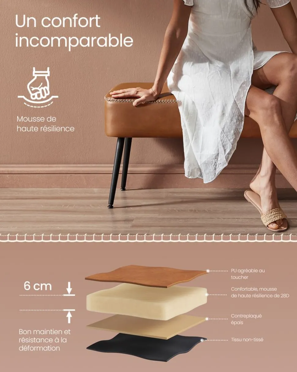 【CONFORT D’ASSISE OPTIMAL】Avec un rembourrage en mousse de 2,5 cm d’épaisseur et du PU de qualité, ce banc de rangement offre un confort d’assise optimal