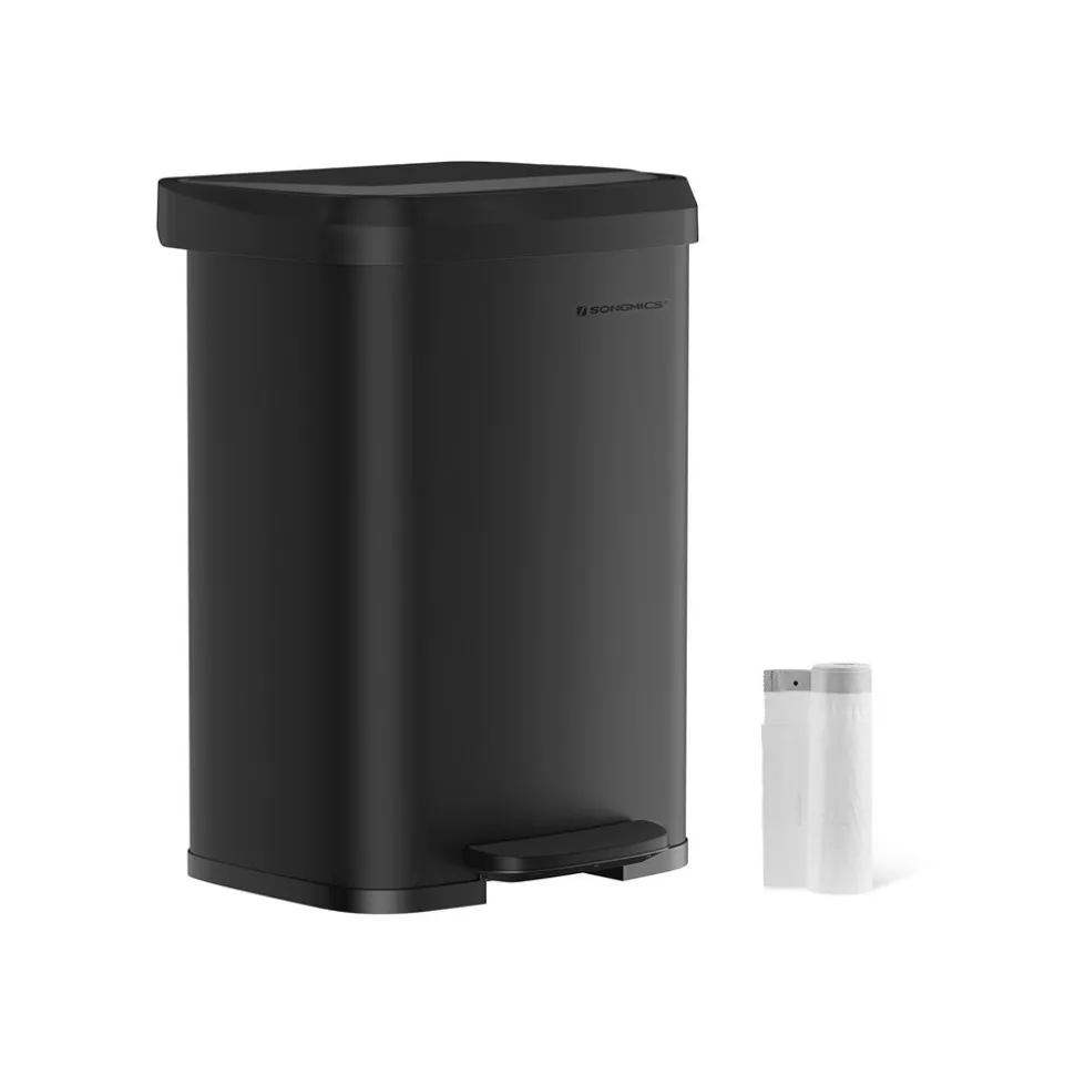 [Une grande poubelle pour les grandes familles] Cette poubelle de cuisine de 50 L offre un grand volume intérieur, répondant aux besoins des grandes familles. Plus besoin de faire plusieurs allers-retours pour vider la poubelle[Pédale pratique] La pédale large de 19,7 cm offre une surface confortable pour appuyer dessus et rend facile et confortable l’ouverture du couvercle. Elle est fabriquée en acier robuste pour une utilisation longue durée[Facilité de nettoyage et design moderne] Cette poubelle de cuisine en acier est résistante à la rouille et facile à nettoyer avec un chiffon humide. Son design est moderne et élégant et il s’adapte à tout type de décoration intérieure[Fermeture silencieuse et maintien en ouverture] Cette poubelle dispose d’un couvercle silencieux qui se ferme en douceur, sans bruit désagréable. Le couvercle peut être maintenu ouvert si vous l’ouvrez à la main jusqu’à un point de blocage[Détails bien pensés] Le filtre à charbon dans le couvercle aide à absorber les mauvaises odeurs et garde votre cuisine fraîche. 15 sacs poubelle (45-55 L) parfaitement adaptés sont inclus
