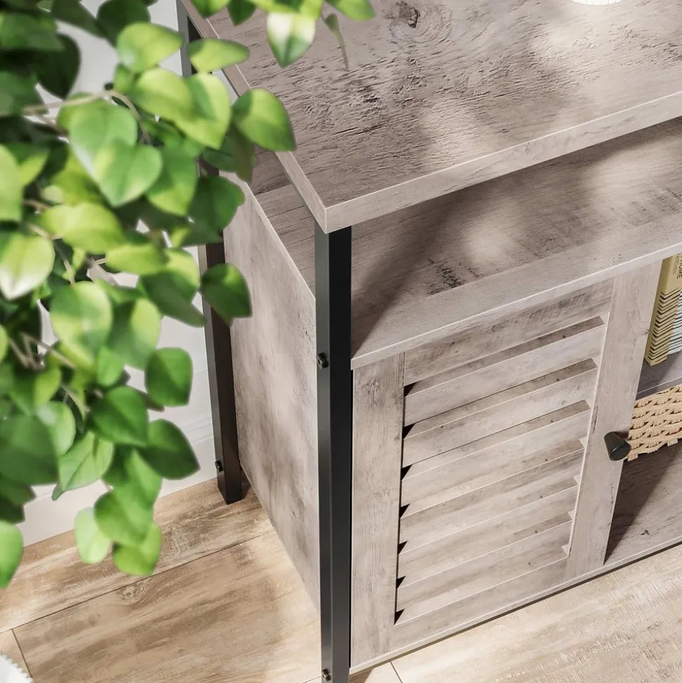 CHARMANT PARTOUT : Des éléments de style industriel et des tons de bois rustiques créent un look chaleureux. C’est ce qui rend ce meuble parfait pour créer un coin élégant dans une entrée, une salle à manger, un salon et bien plus encore