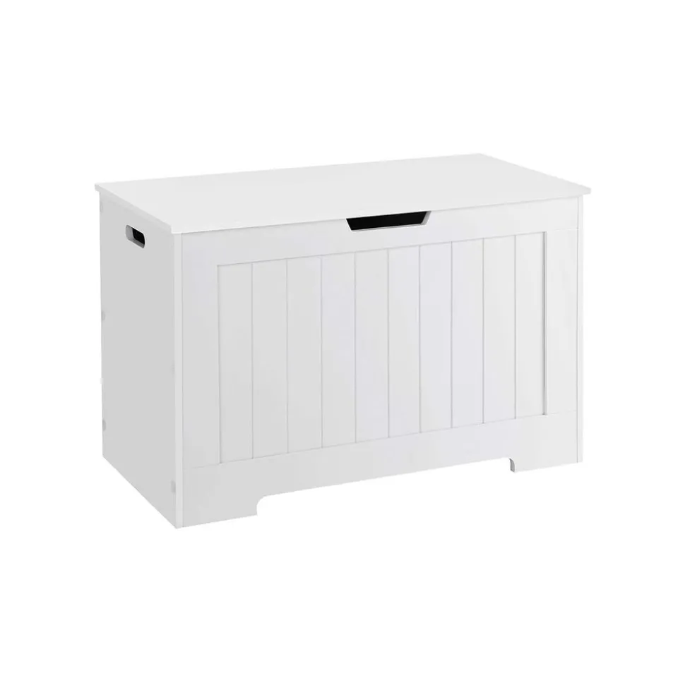 Ce coffre de grande capacité, fabriqué en panneaux de fibres de moyenne densité, est robuste. Vous pouvez ranger plein d’affaires en un seul endroit. Il peut également servir de banc à chaussures ou de bout de lit. Sa charge maximale est de 180 kg. Sa finition blanche élégante est compatible avec tout style de décoration intérieure, idéal pour l’entrée, la chambre, la salle de jeu, etc. Grâce aux charnières de freinage, le couvercle ne se referme pas brutalement offrant plus de sécurité pour vos enfants.