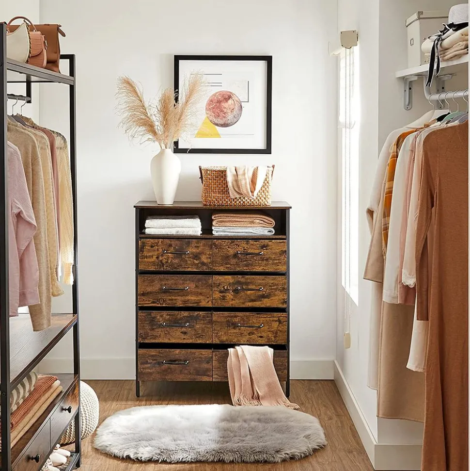 Bye bye le chaos ! Si vous continuez à perdre du terrain dans la bataille contre les pyjamas, les couvertures et les affaires éparpillées partout, voici du renfort : cette commode à 8 tiroirs en tissu spacieuse qui vous aidera à ranger votre maison