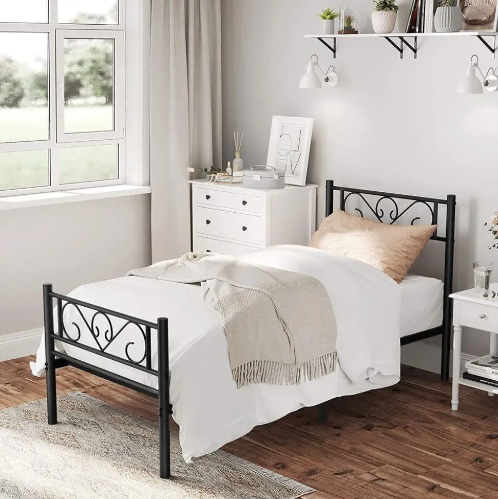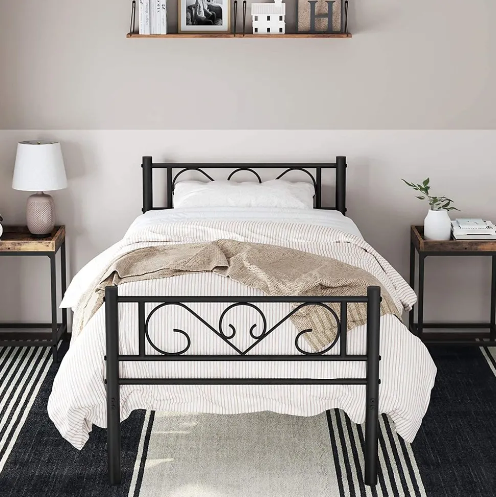 Un bonheur durable : Digne de confiance, ce cadre de lit simple robuste est soutenu par un cadre, 6 pieds et des barres en métal. En voilà un bel alliage pour supporter jusqu’à 150 kg