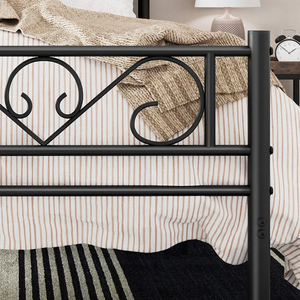 Simple mais élégant : Créez la pièce de de vos rêves avec ce cadre de lit en métal. Son allure simple et ses motifs élégants au pied et sur la tête de lit ajoutent du style dans votre chambre tout en soulageant votre porte-monnaie