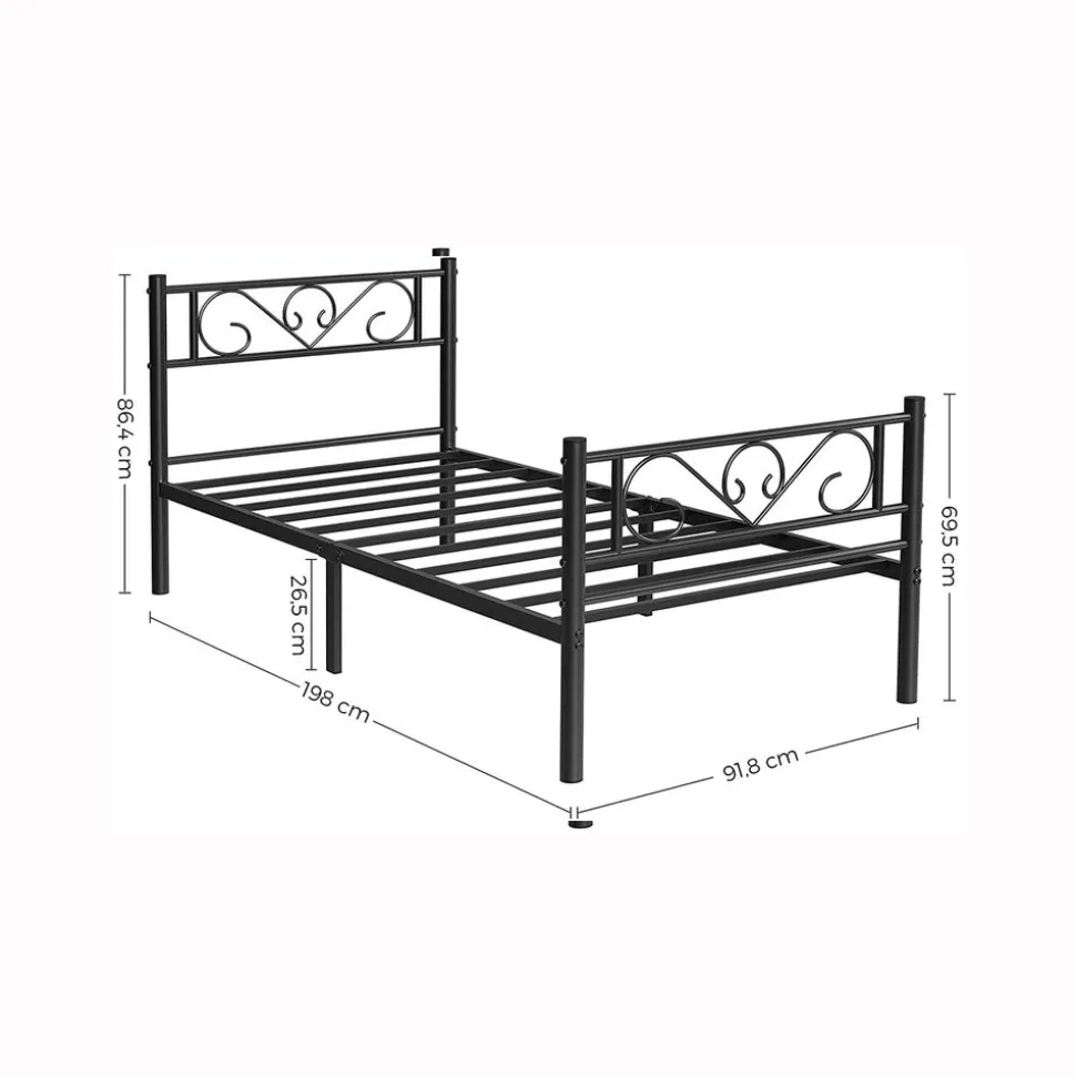 Manque de place ? Pas de soucis ! Avec une taille compacte de 198 x 91,8 x 86,4 cm, ce cadre de lit fait pour un matelas de 90 x 190 cm (non inclus) s’intégrera facilement dans des chambres aux espaces restreints avec une décoration allant du minimalisme moderne au charme industriel