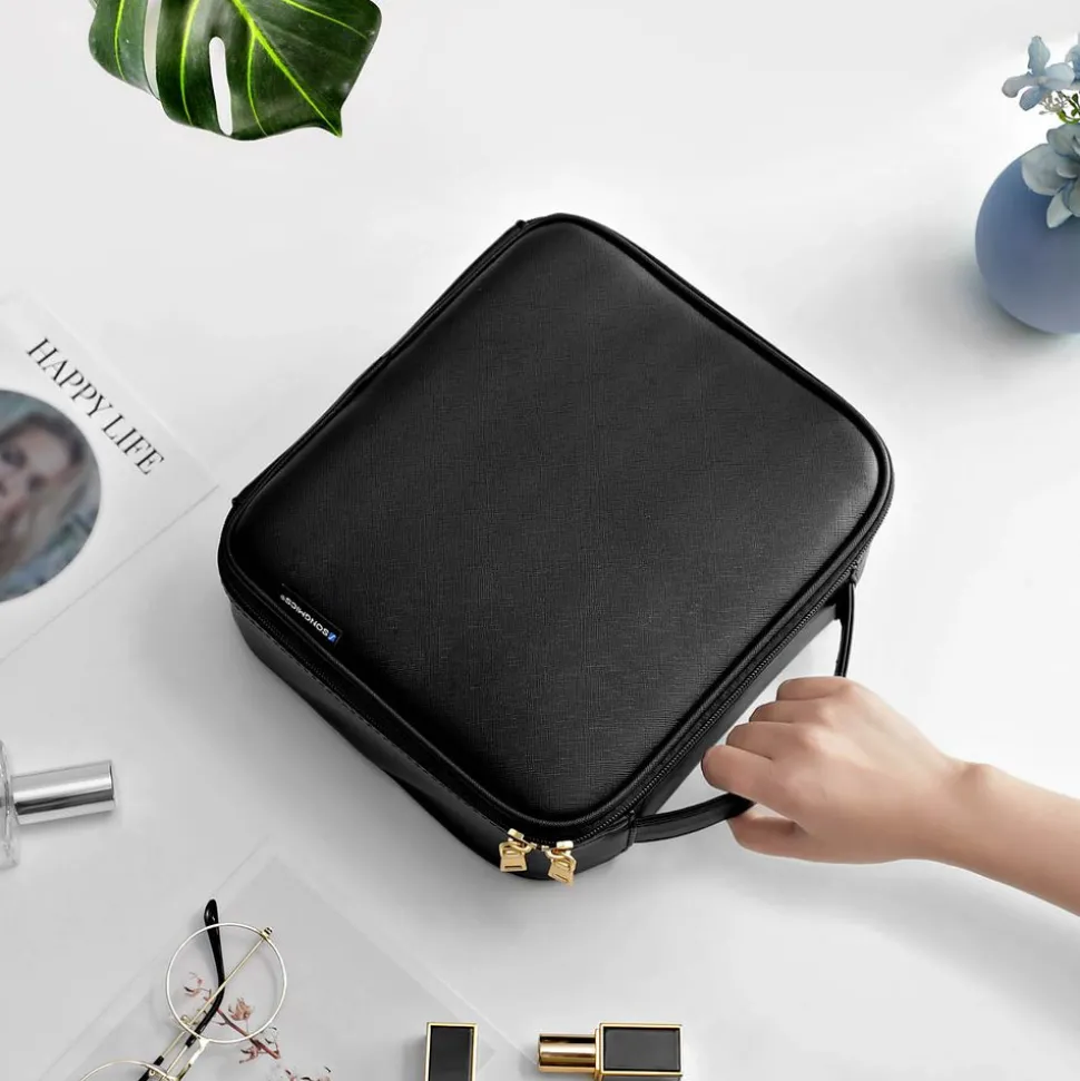 LA BEAUTÉ VOUS SUIT PARTOUT : Bien agencée, cette trousse (taille : 25,5 x 24,5 x 9,5 cm) emmène vos accessoires de beauté aux spectacles ou en vacances. Elle se glisse facilement dans votre valise
