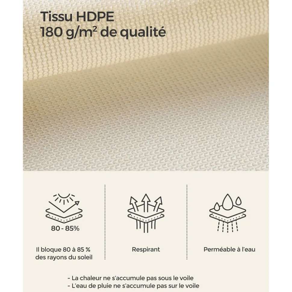 Heures de pointe ? Utiliser ce parasol pendant les heures les plus chaudes ? C’est possible ! La toile est fabriquée en tissu polyester de 180 g/m² qui est durable, résistant et ne se décolore pas. Elle vous permet de rester en toute tranquillité tout été !