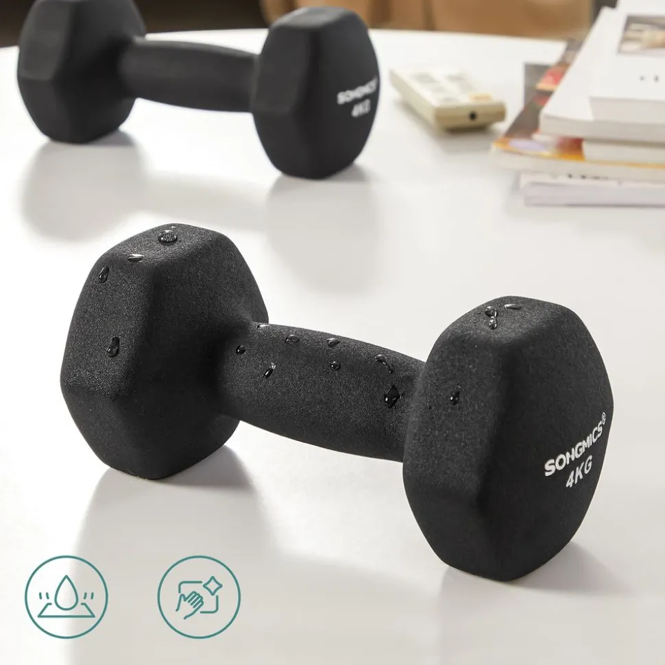 Utilisation sure : Le revêtement en néoprène est antiglisse et vous offre une excellente prise en main. La sécurité est assurée même si vous transpirez beaucoup en faisant du sport. Il amortit également les chocs sur votre plancher