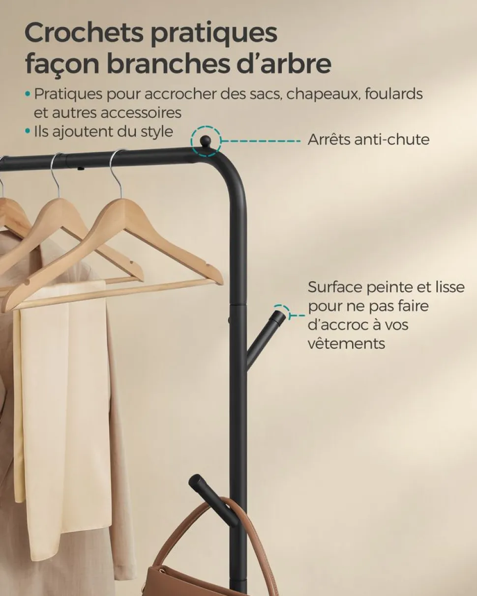 [Robuste, durable & facile à utiliser] Le poteau et les crochets de ce porte-manteau sur pieds sont en bois, ils sont robustes et durables. Les patères sont dotées de boules à leur extrémité pour ne pas abîmer vos vêtements[Stable & résistant] Le socle en panneau MDF de Ø 38 cm et le poteau de Ø 4 cm assurent une bonne stabilité. Les tiges se vissent solidement au poteau, chacune supporte jusqu’à 5 kg, pas de problème pour les manteaux lourds d’hiver[3 hauteurs réglables] Le poteau est en 3 parties. Grâce à sa structure astucieuse, vous pouvez régler la hauteur du porte-manteau selon vos besoins. Pour les enfants, vous pouvez monter 1 ou 2 parties ; pour les adultes, vous pouvez monter les 3 parties[Gain de place] Grâce à sa forme fine, ce porte-manteau prend peu de place, il se glisse parfaitement dans un coin de l’entrée, de la chambre, du salon ou du bureau[Montage facile] Grâce aux pièces numérotées et aux instructions illustrées, vous pouvez assembler ce porte-manteau facilement et rapidement