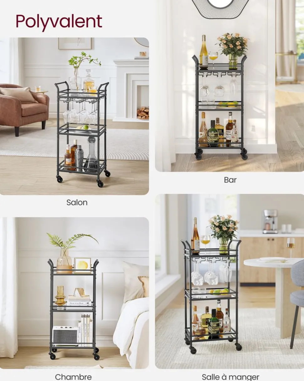 【MULTIFONCTIONNEL】Ce chariot à roulettes polyvalent peut être utilisé dans la salle de bain, la salle à manger, la chambre, comme chariot à outils, chariot à livres, chariot de service, etc. Il embeillit votre espace et devient un allié indispensable !
