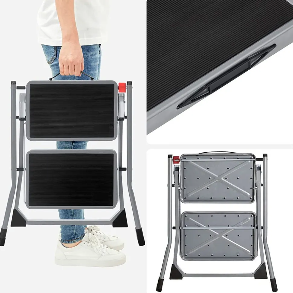 SE DÉPLIER ET SE REPLIER RAPIDEMENT: Dépliez cette échelle domestique en quelques secondes lorsque vous voulez changer une ampoule ou enlever vos rideaux. Puis repliez-la à nouveau aussi rapidement et placez-le dans un coin pour gagner de la place