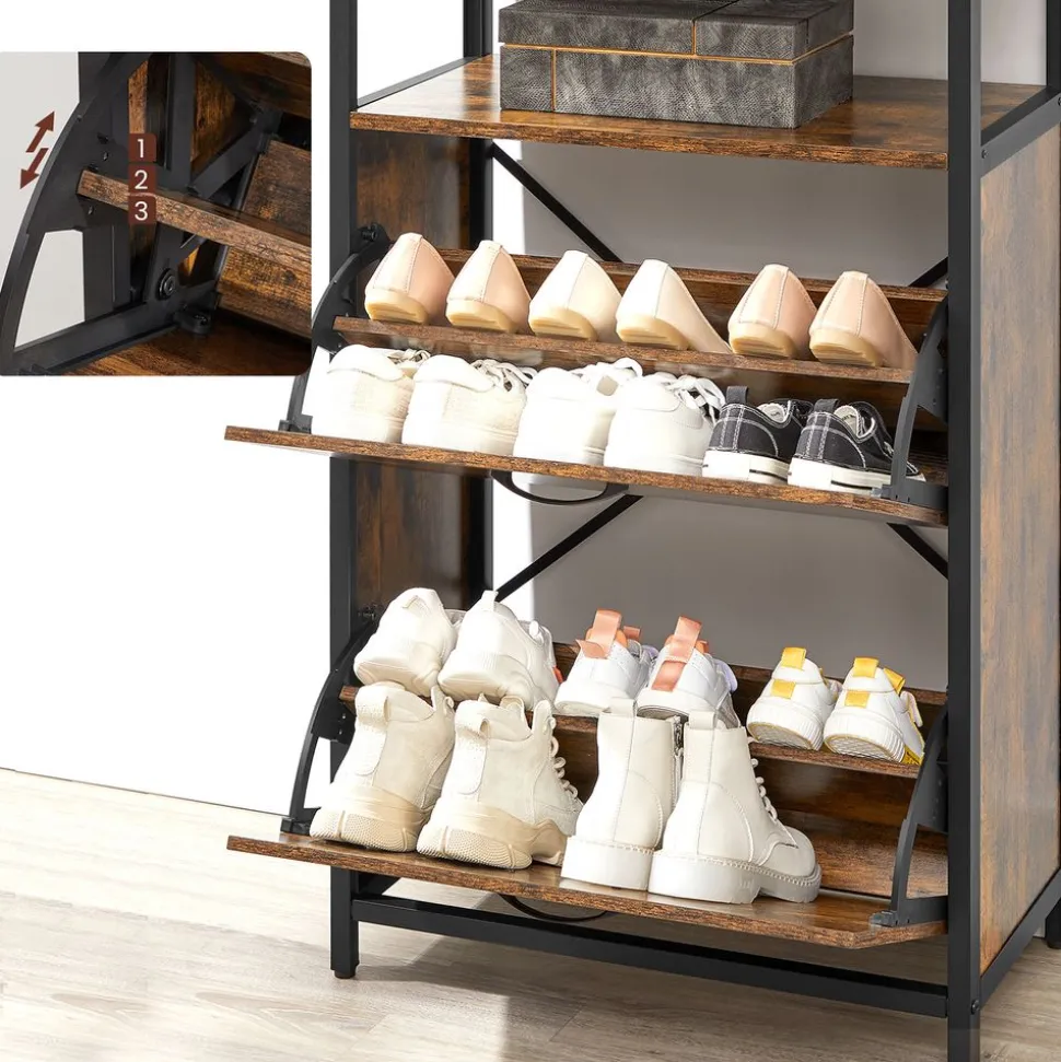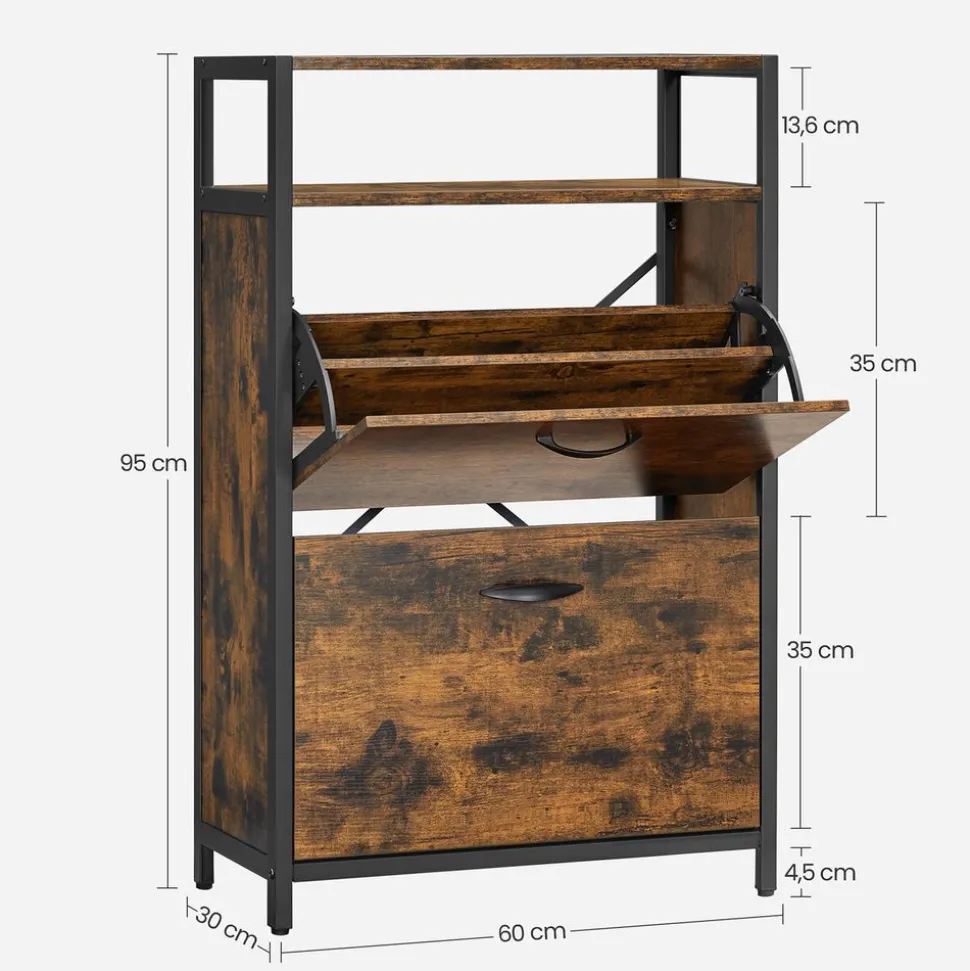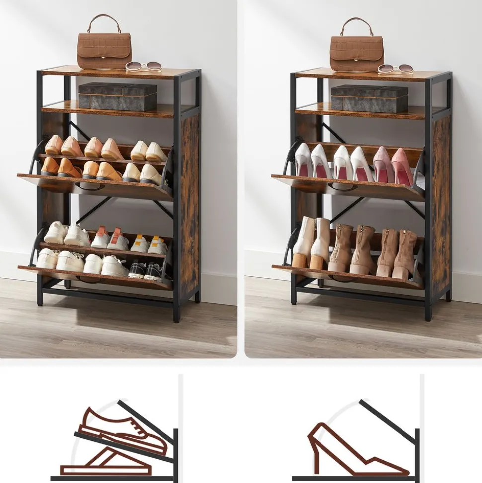 Plus d’espace : Ouvrez facilement les 2 abattants à l’aide des poignées pratique. Chacun a un séparateur. Il y a assez de place pour 8 à 12 paires de chaussures. D’une grande capacité, il prend peu d’espace au sol tout en exploitant au mieux la hauteur