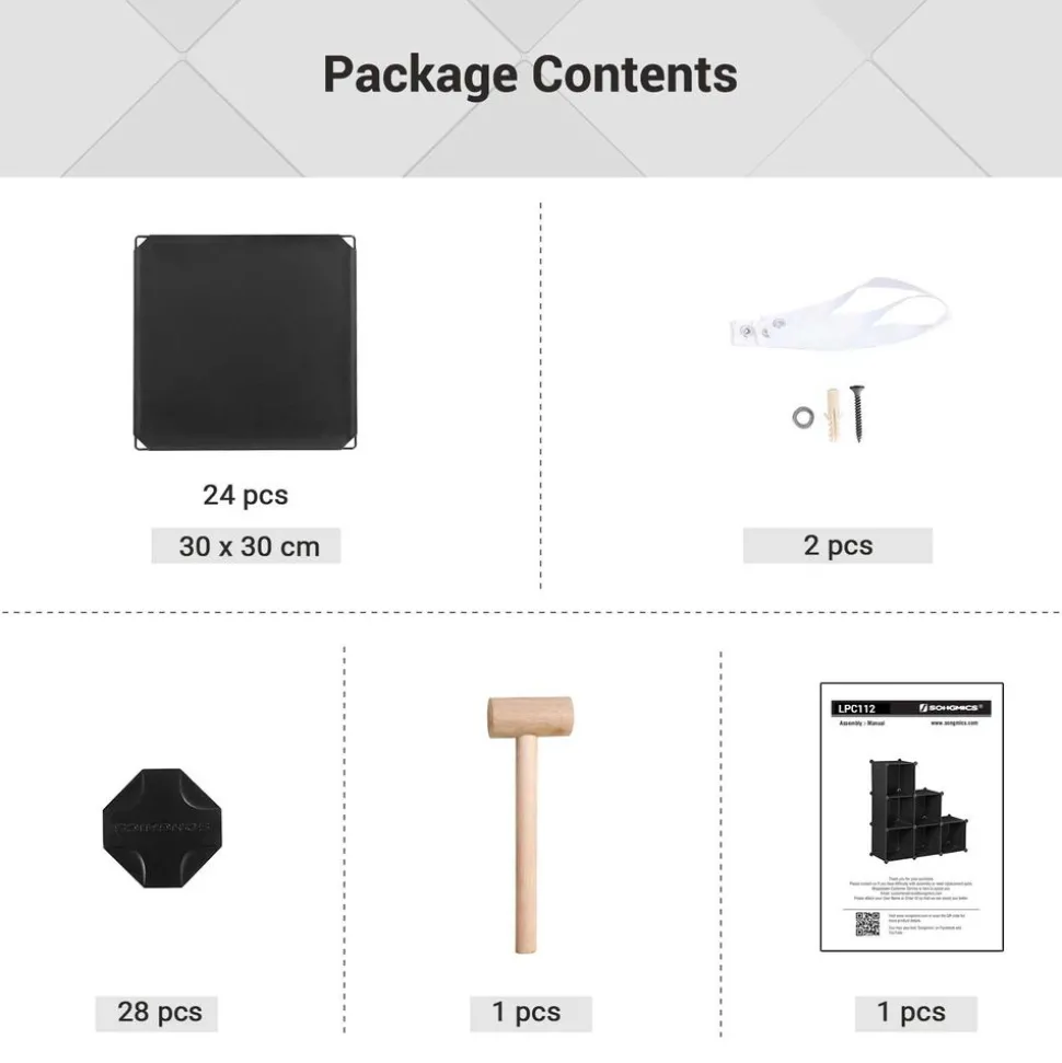 3. Chaque armoire modulaire Songmics est munie d’un accessoire anti-renversement, il est possible d’ancrer le produit sur le mur à l’aide de ces accessoires.