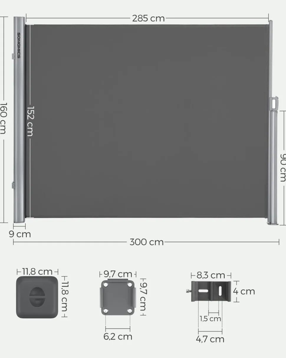 SKU: SKUGPU074G10 Categories: Extérieur & Jardin, Parasols, Parasols & Stores Tags: Blanc Crème, Gris Tourterelle, Marron Camel, SONGMICS Brand: SONGMICS