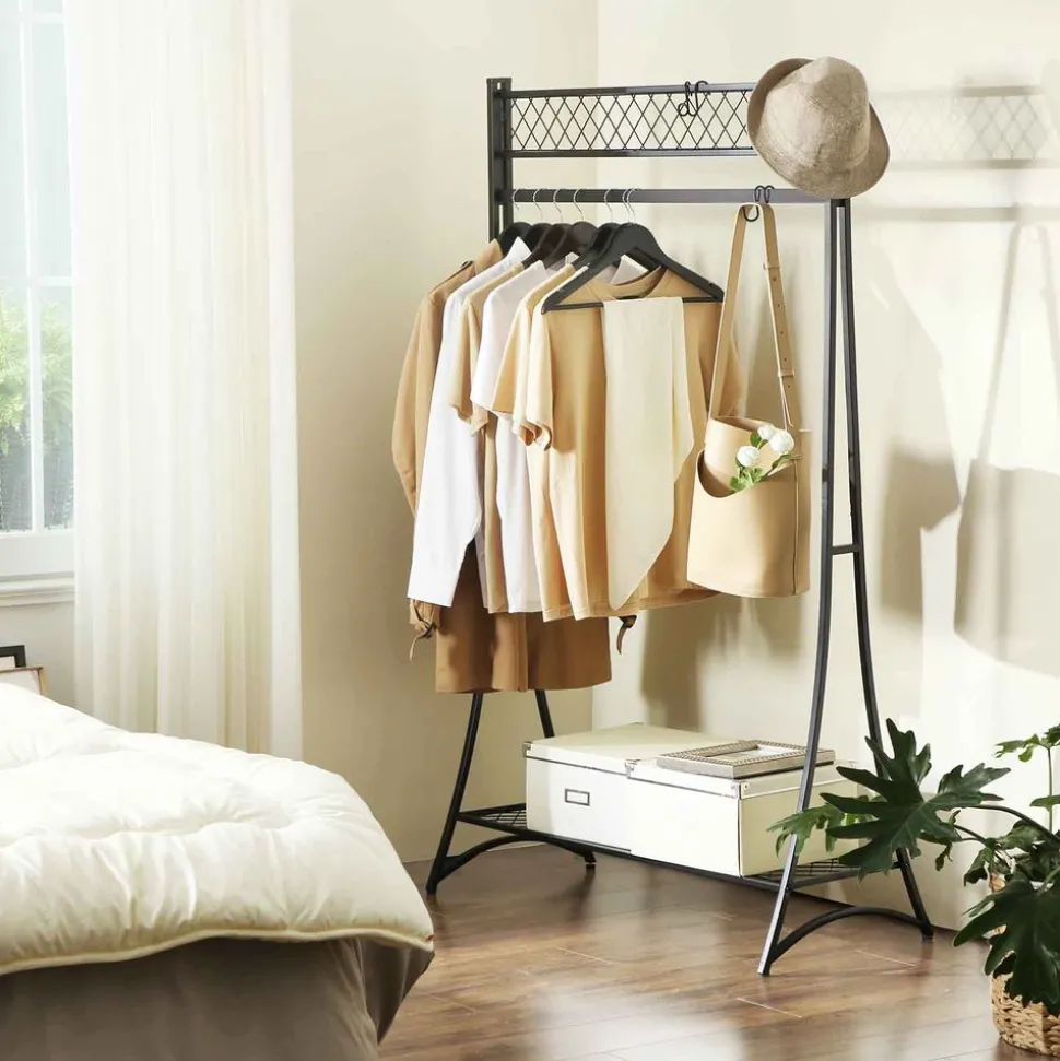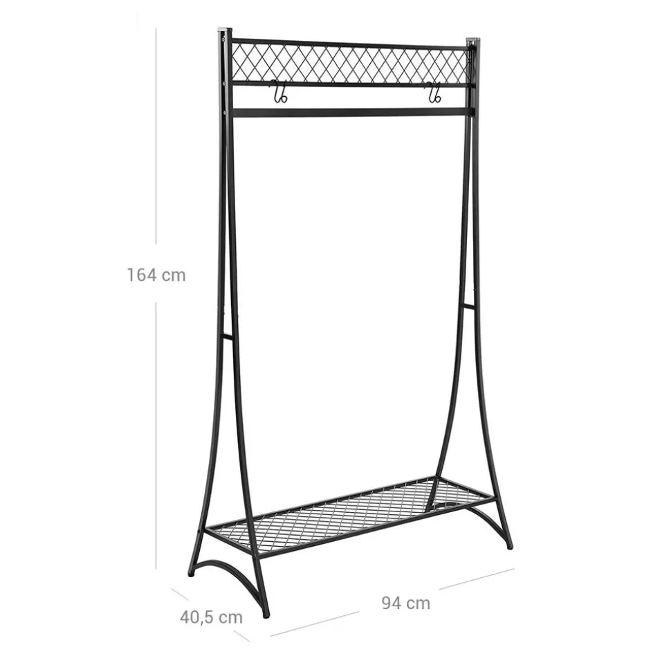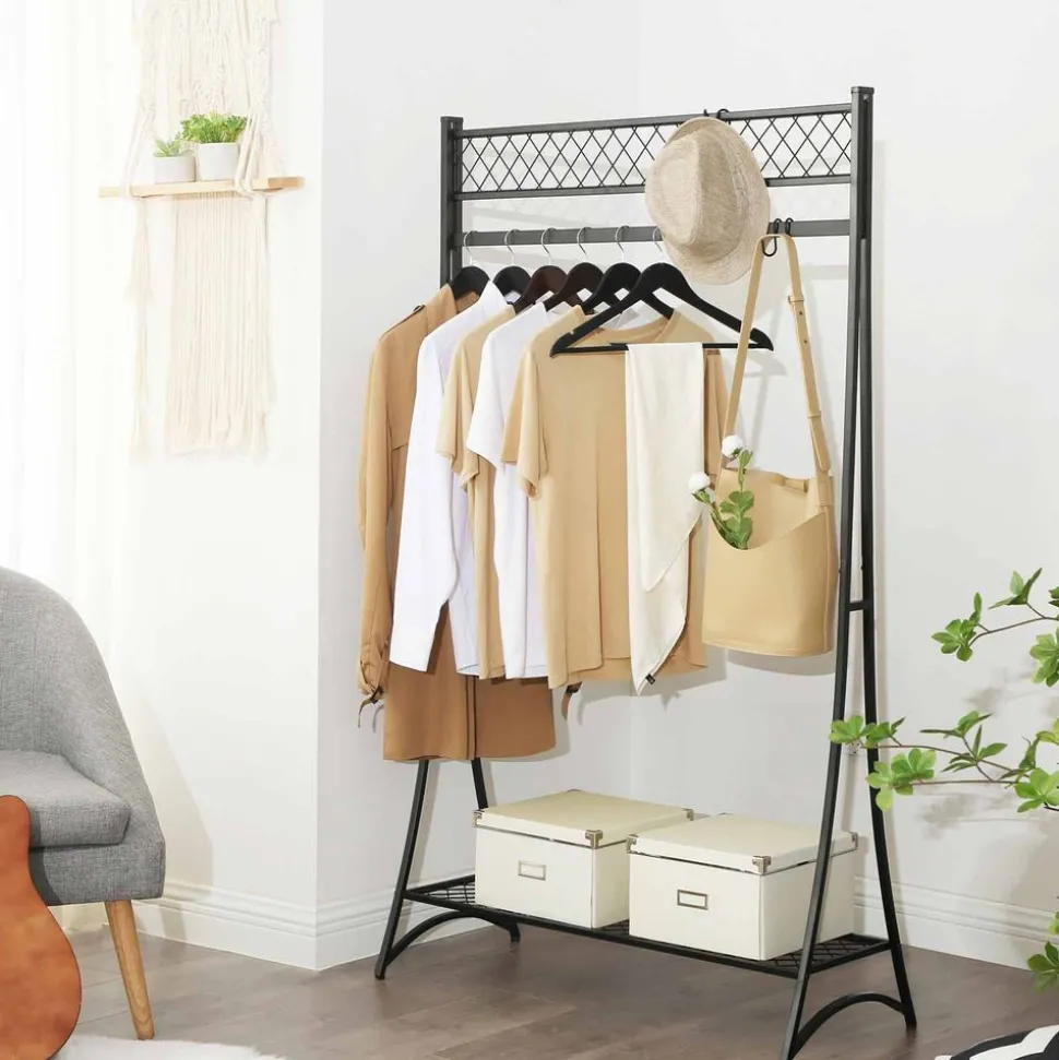 FAIT POUR DURER : Fabriqué en fer costaud avec un design semblable à une tour pour une grande stabilité, ce large portant possède une barre de suspension (charge max de 50 kg) pour ranger vos vêtements et une étagère en bas (charge max de 15 kg) pour déposer des boîtes, des chaussures et plus encore