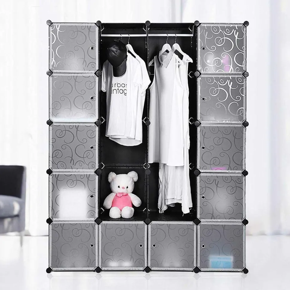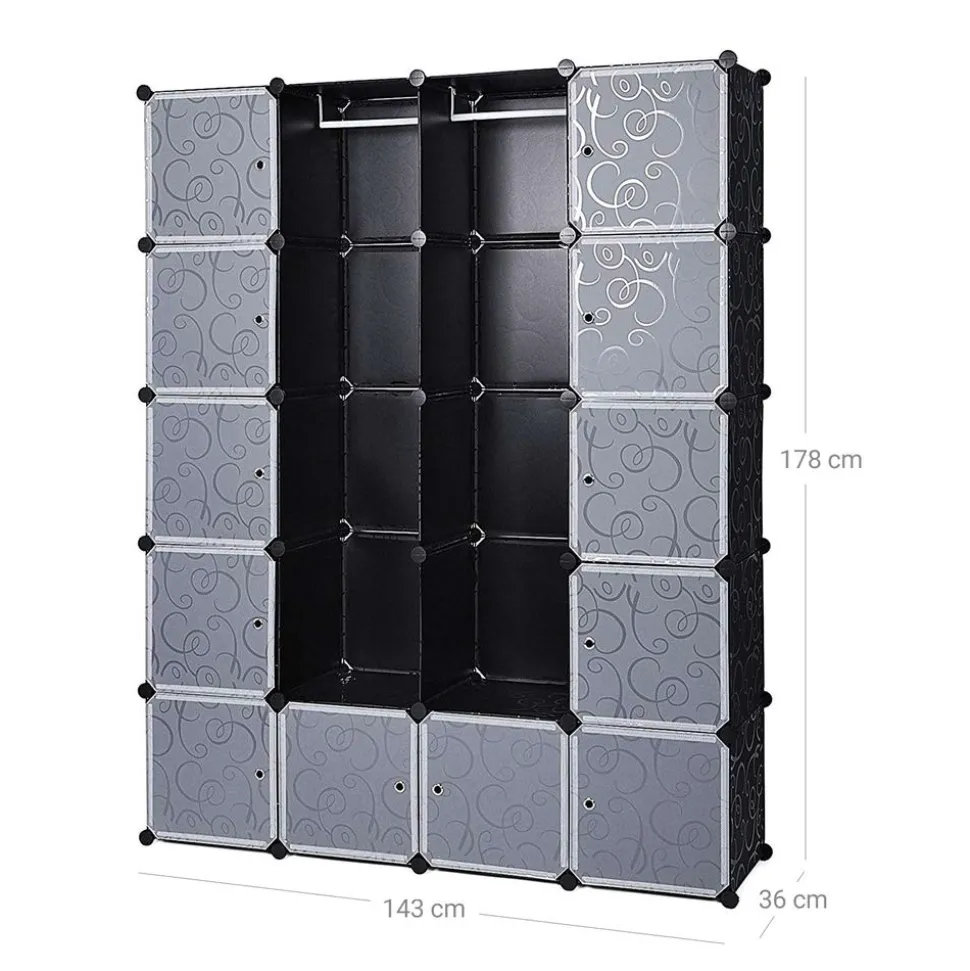 Grande capacité – Avec la dimension de 35 x 35 x 35 cm (L x l x h), chaque cube a une capacité de 42,9 L, cette armoire a une contenance de 894 L, qui permet de ranger parfaitement les chaussures et les jouets d’une famille